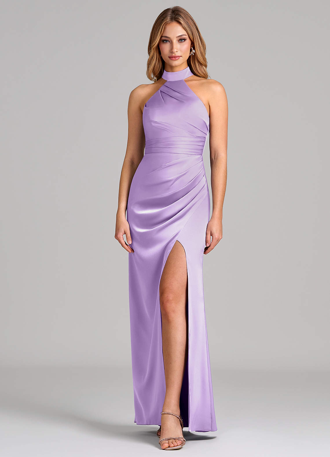 Lilac Sheath Pleated Stretch Satin Dress