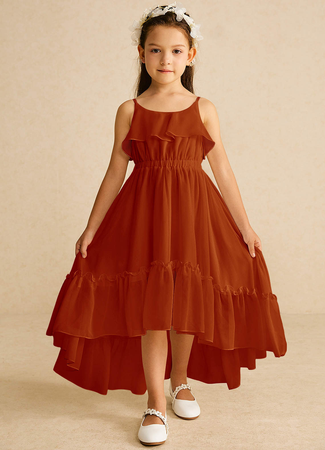 Azazie Karmen Flower Girl Dresses Paprika A-Line Ruched Chiffon Dress image1