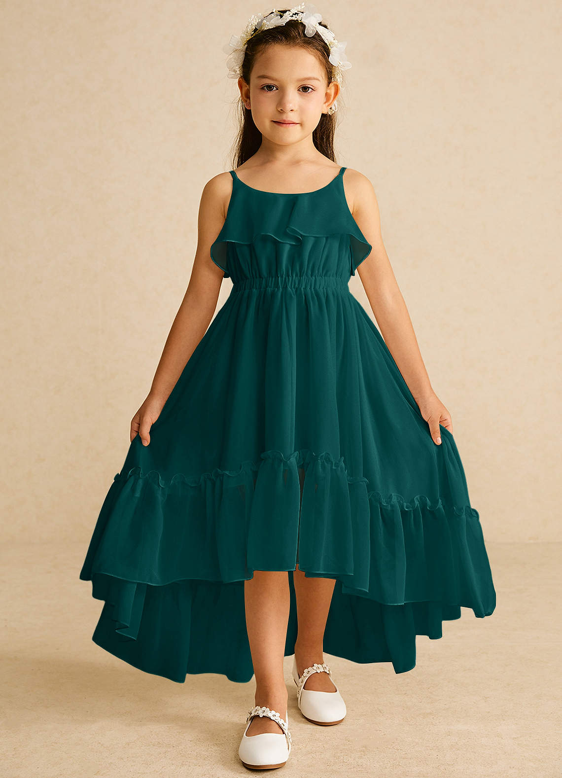 Peacock A-Line Ruched Chiffon Dress