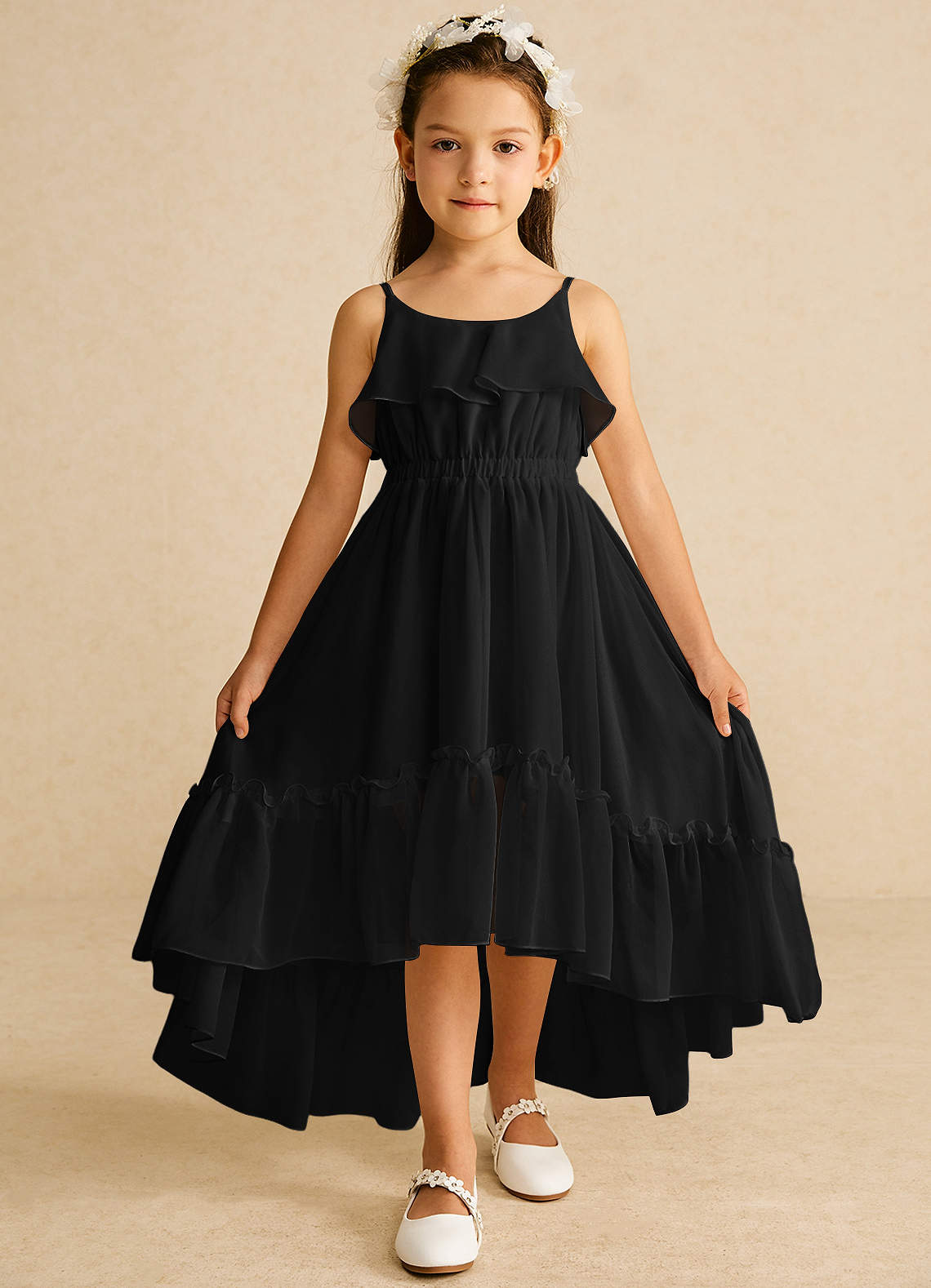 Black A-Line Ruched Chiffon Dress