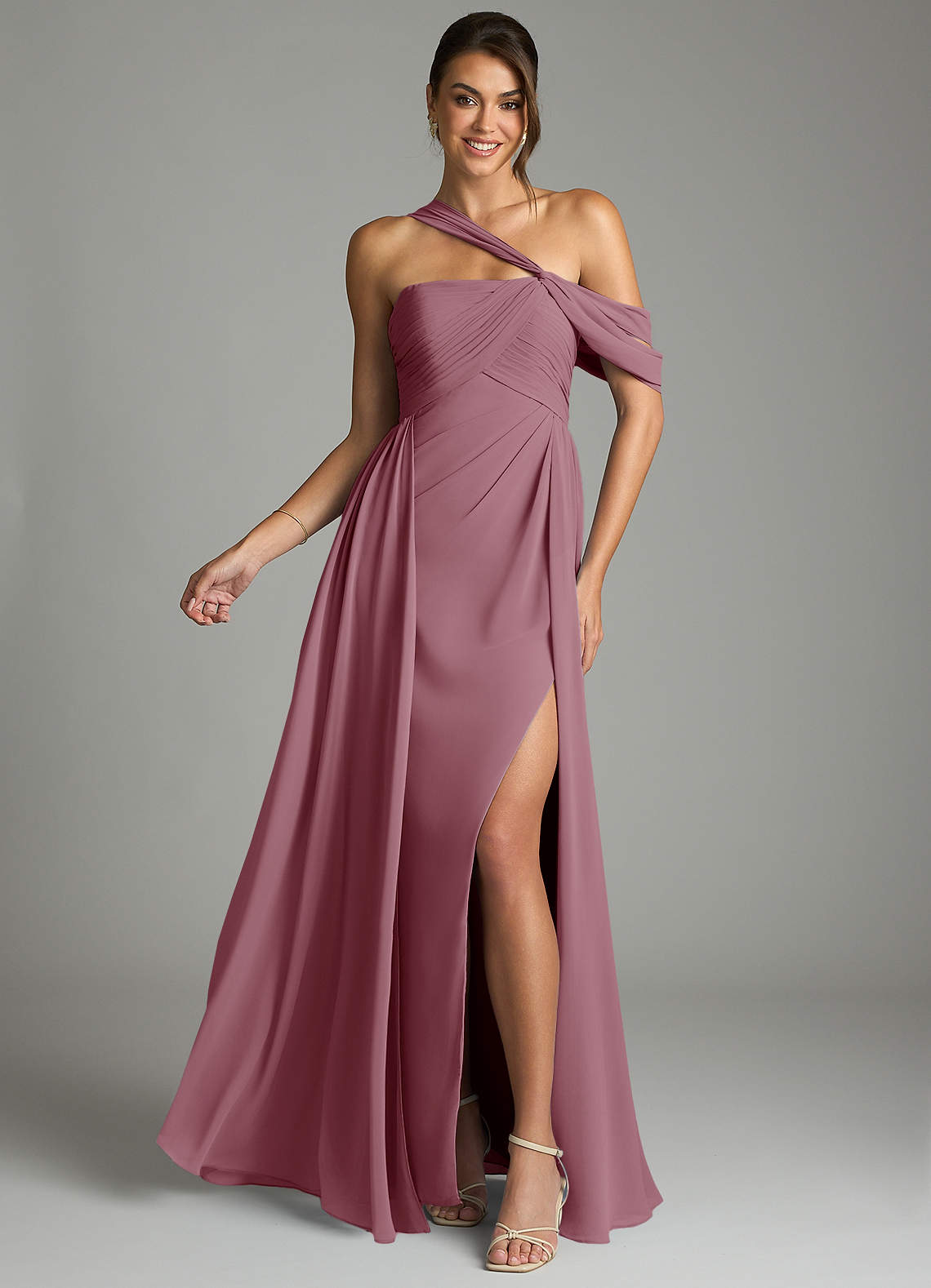 Vintage Mauve A-Line Off the Shoulder Chiffon Dress