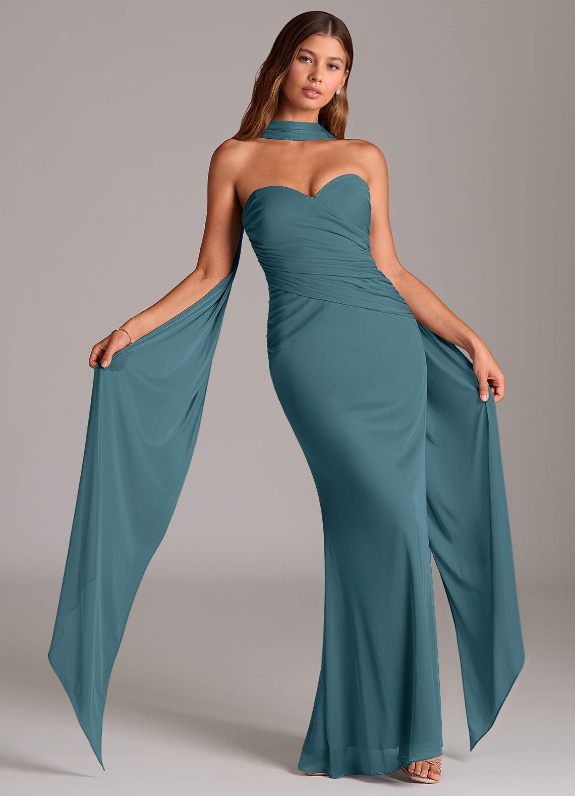 Bermuda Sheath Strapless Mesh Convertible Dress