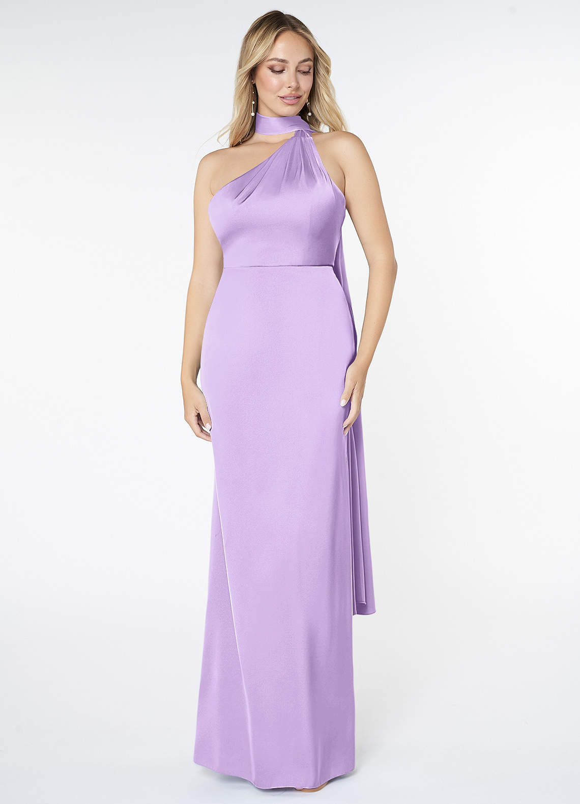 Lilac Mermaid High Neck Stretch Satin Dress