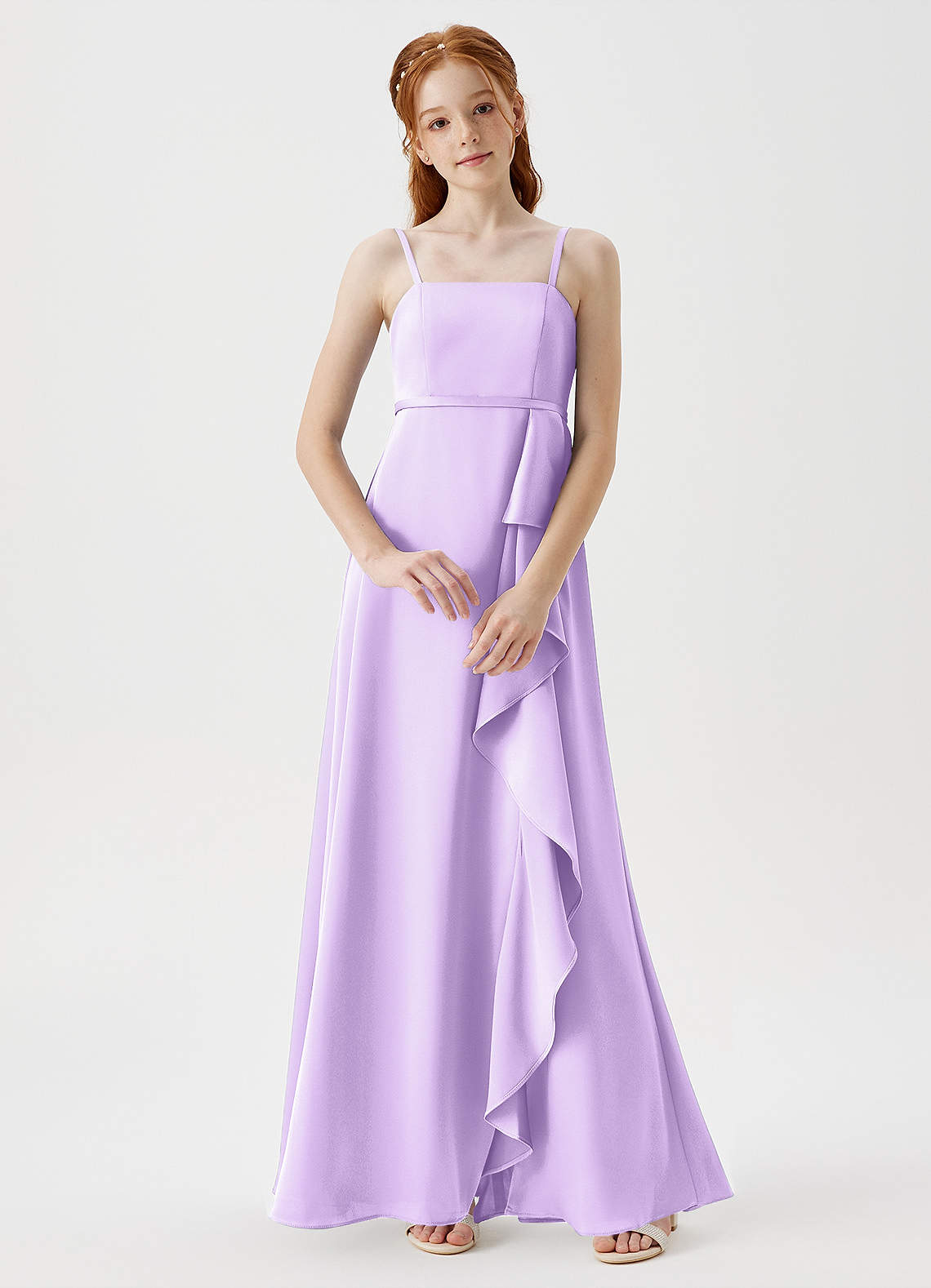 Azazie Kaylee Junior Lilac A-Line with Belt Stretch Satin Dress image1
