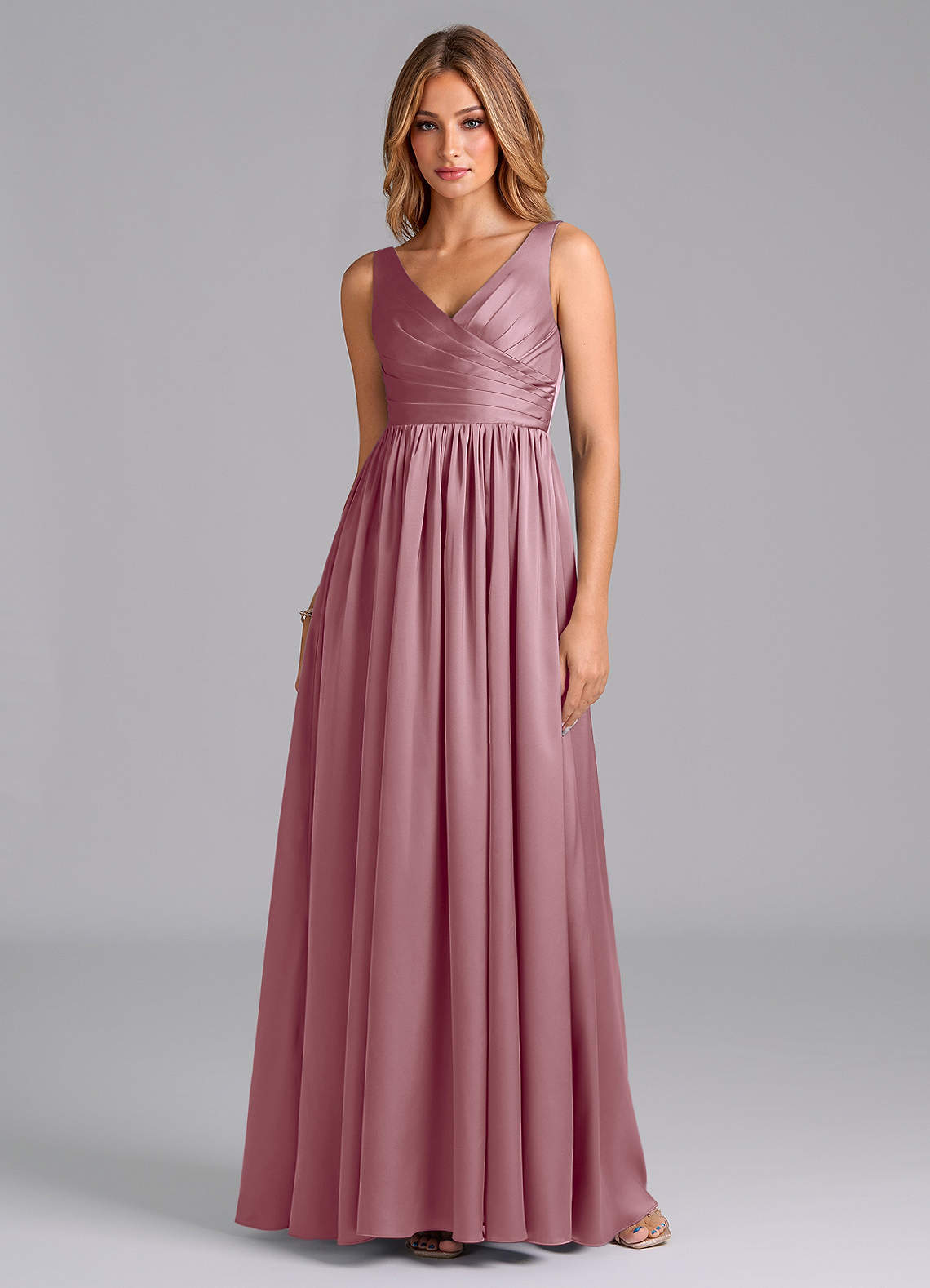 Vintage Mauve A-Line Pleated Stretch Satin Dress