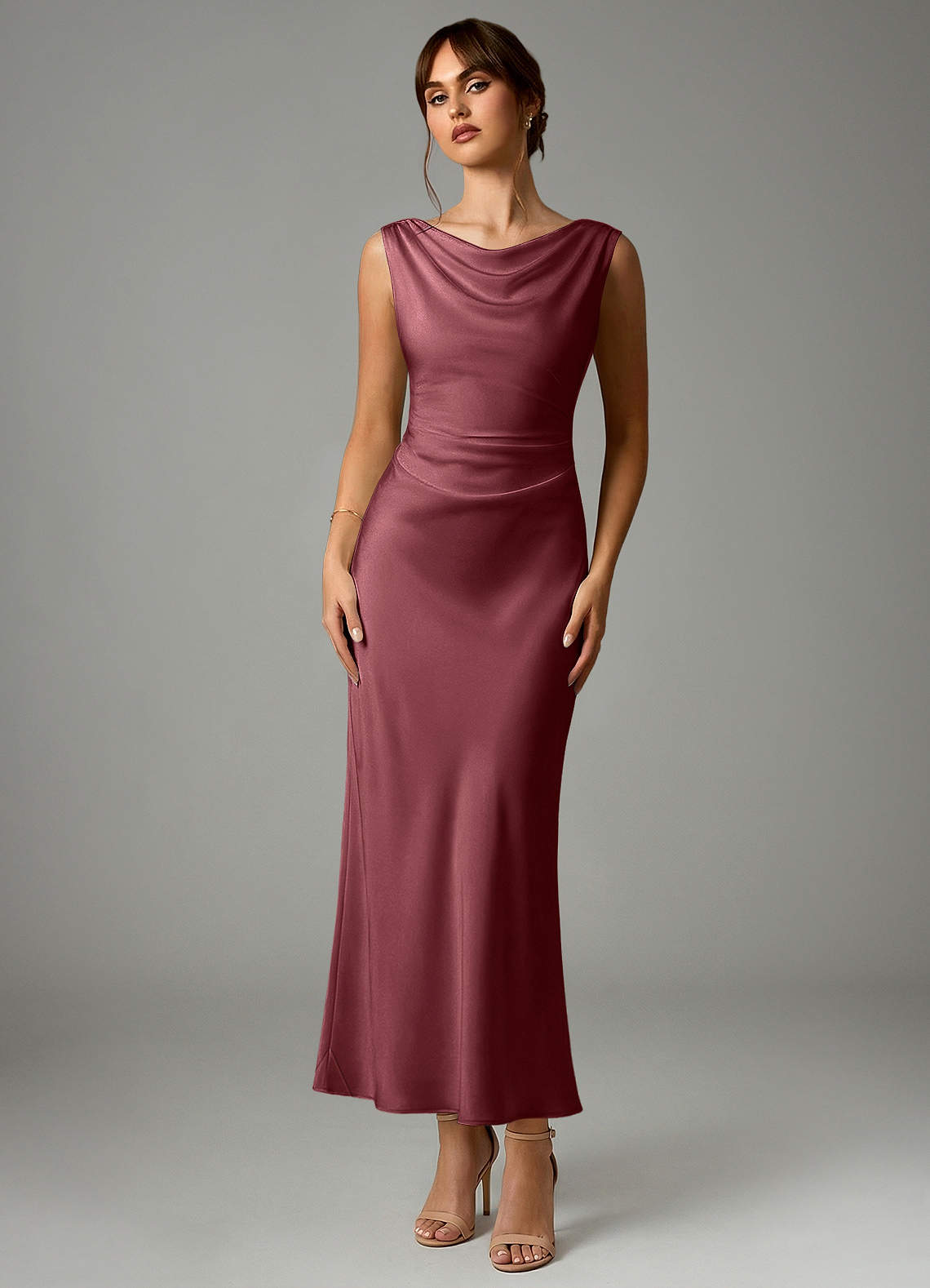 Desert Rose Mermaid Pleated Stretch Satin Dress