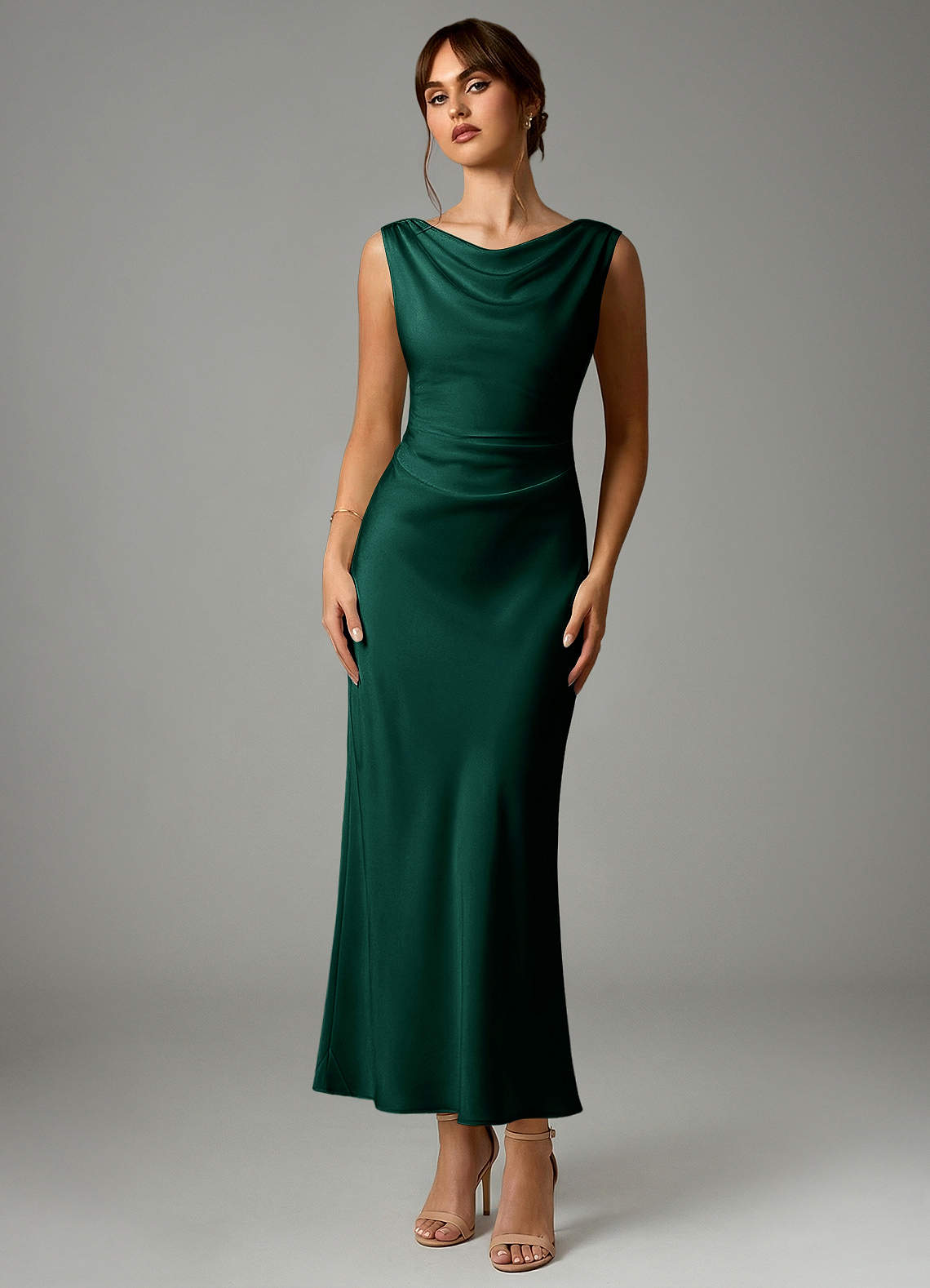 Emerald Mermaid Pleated Stretch Satin Dress
