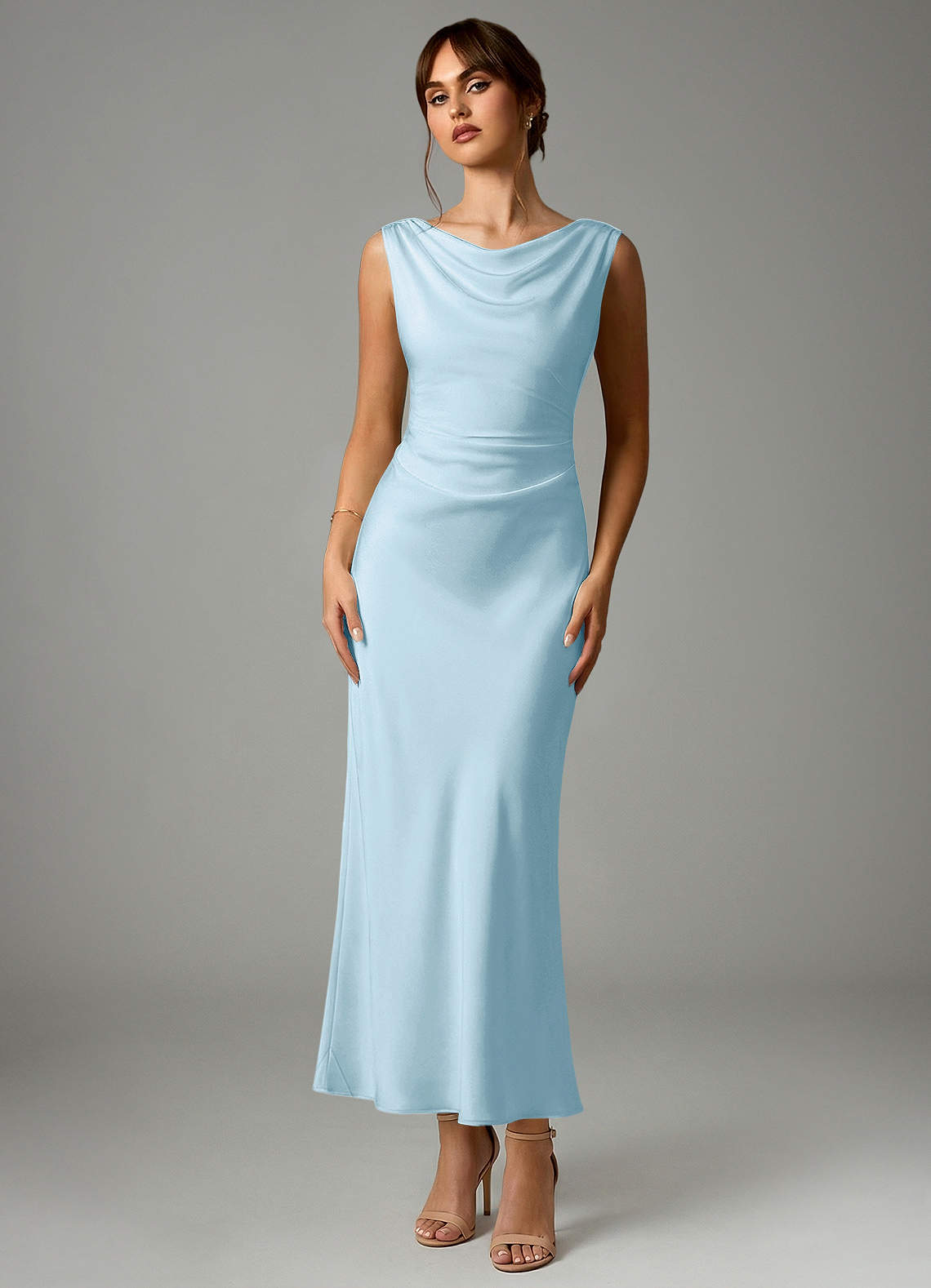 Sky Blue Mermaid Pleated Stretch Satin Dress