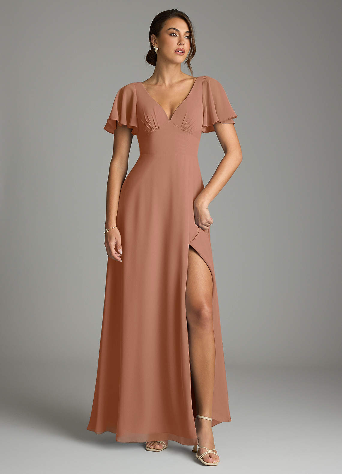 Bronzer A-Line Flounce Sleeve Chiffon Dress