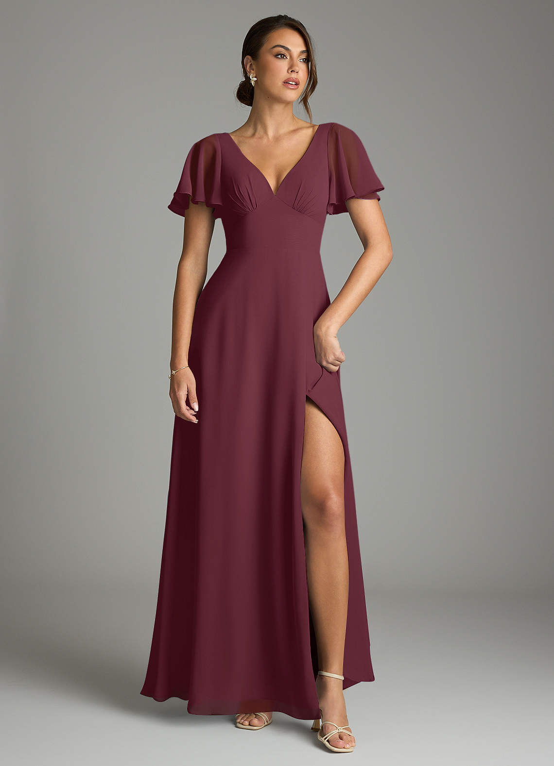 Cabernet A-Line Flounce Sleeve Chiffon Dress