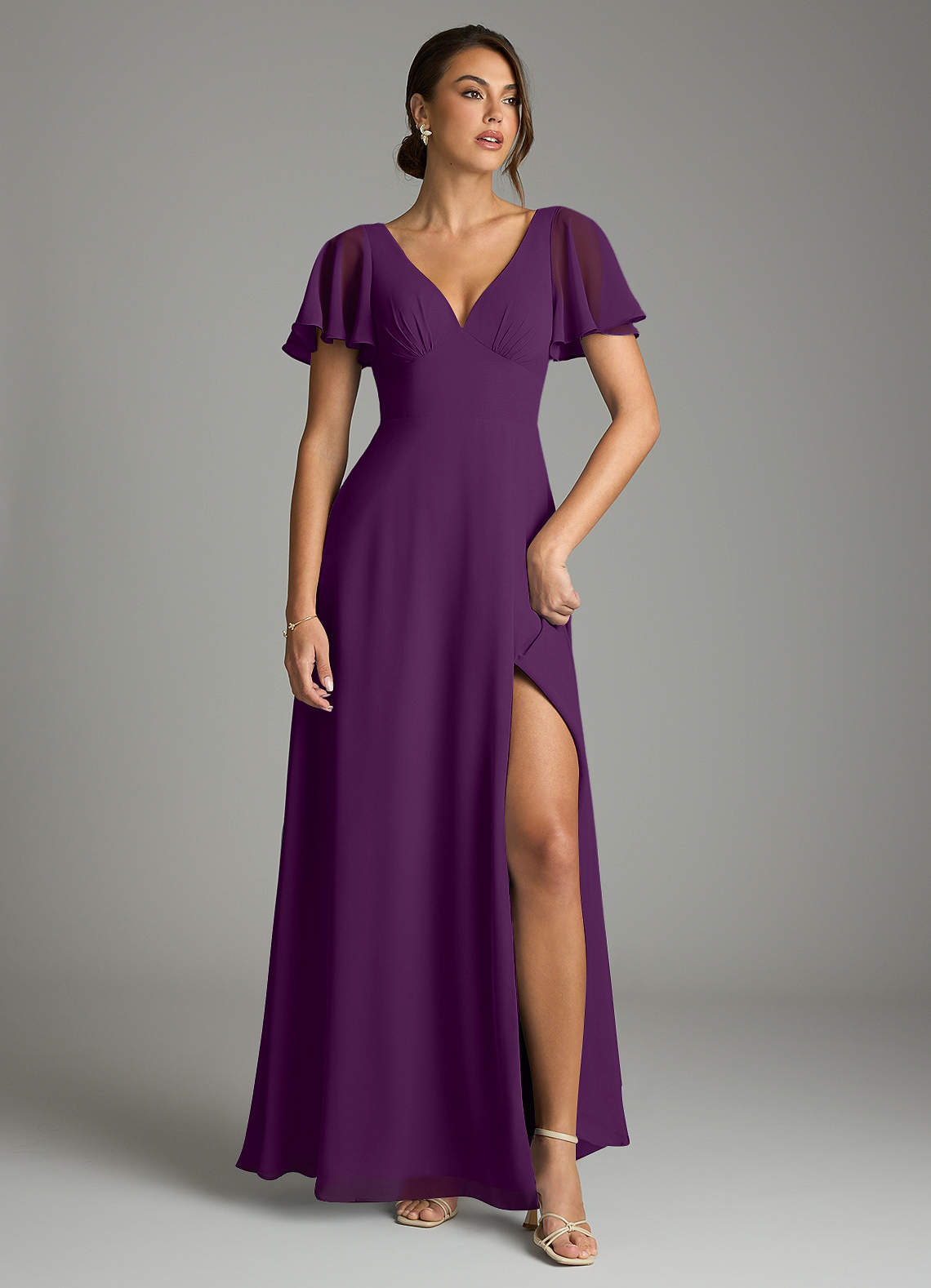 Grape A-Line Flounce Sleeve Chiffon Dress