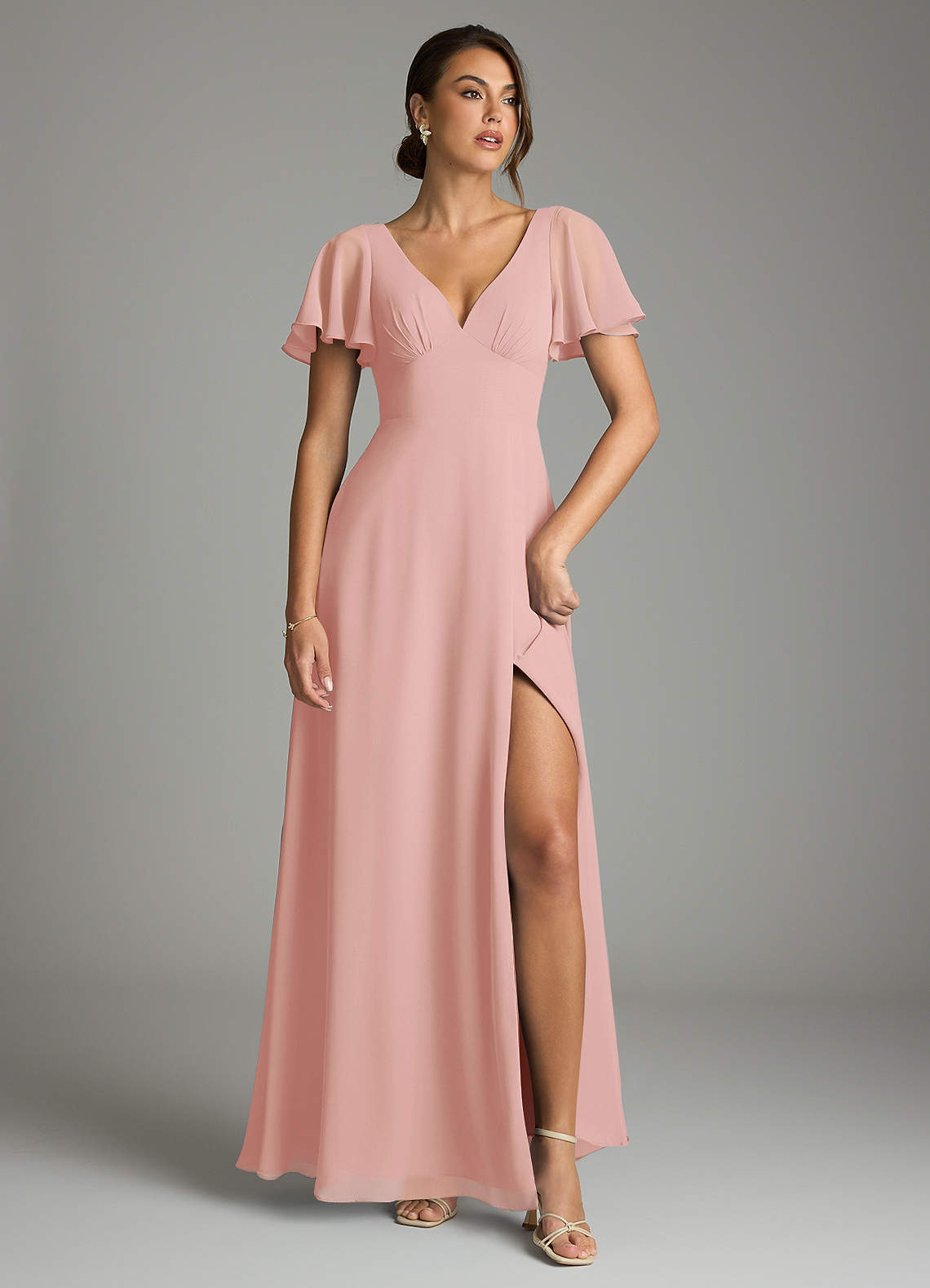 Rosette A-Line Flounce Sleeve Chiffon Dress