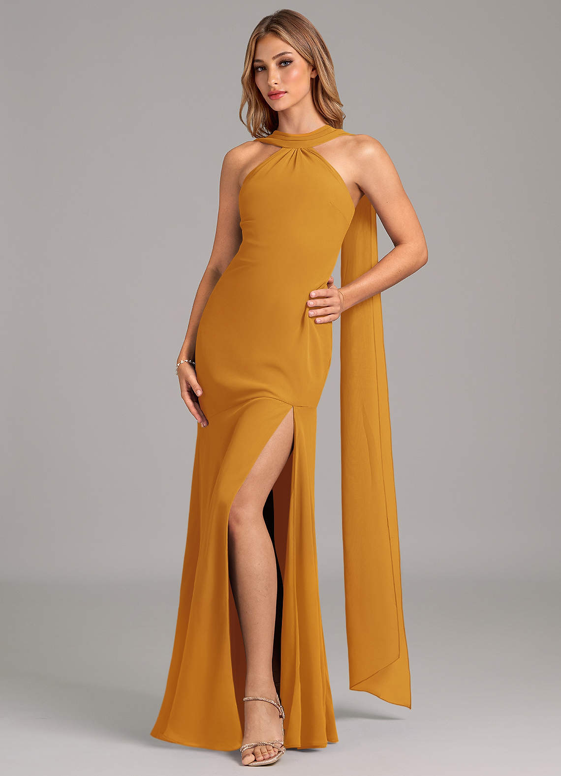 Butterscotch Mermaid Pleated Chiffon Dress