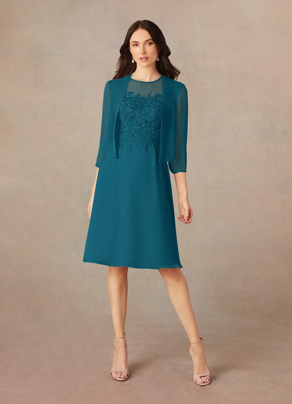 Ink Blue A-Line Scoop Sequins Chiffon Dress