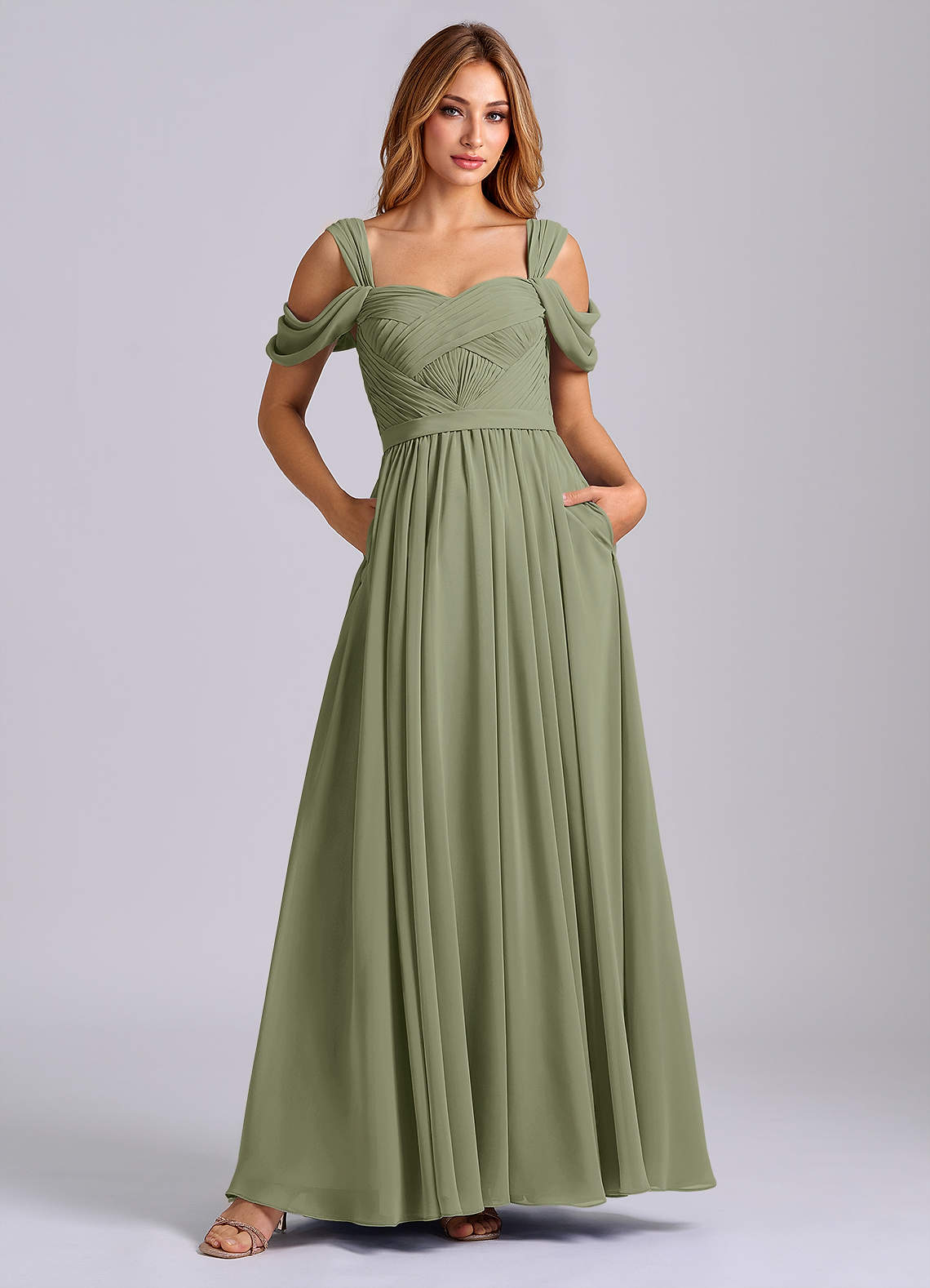 Pistachio A-Line Off the Shoulder Chiffon Dress