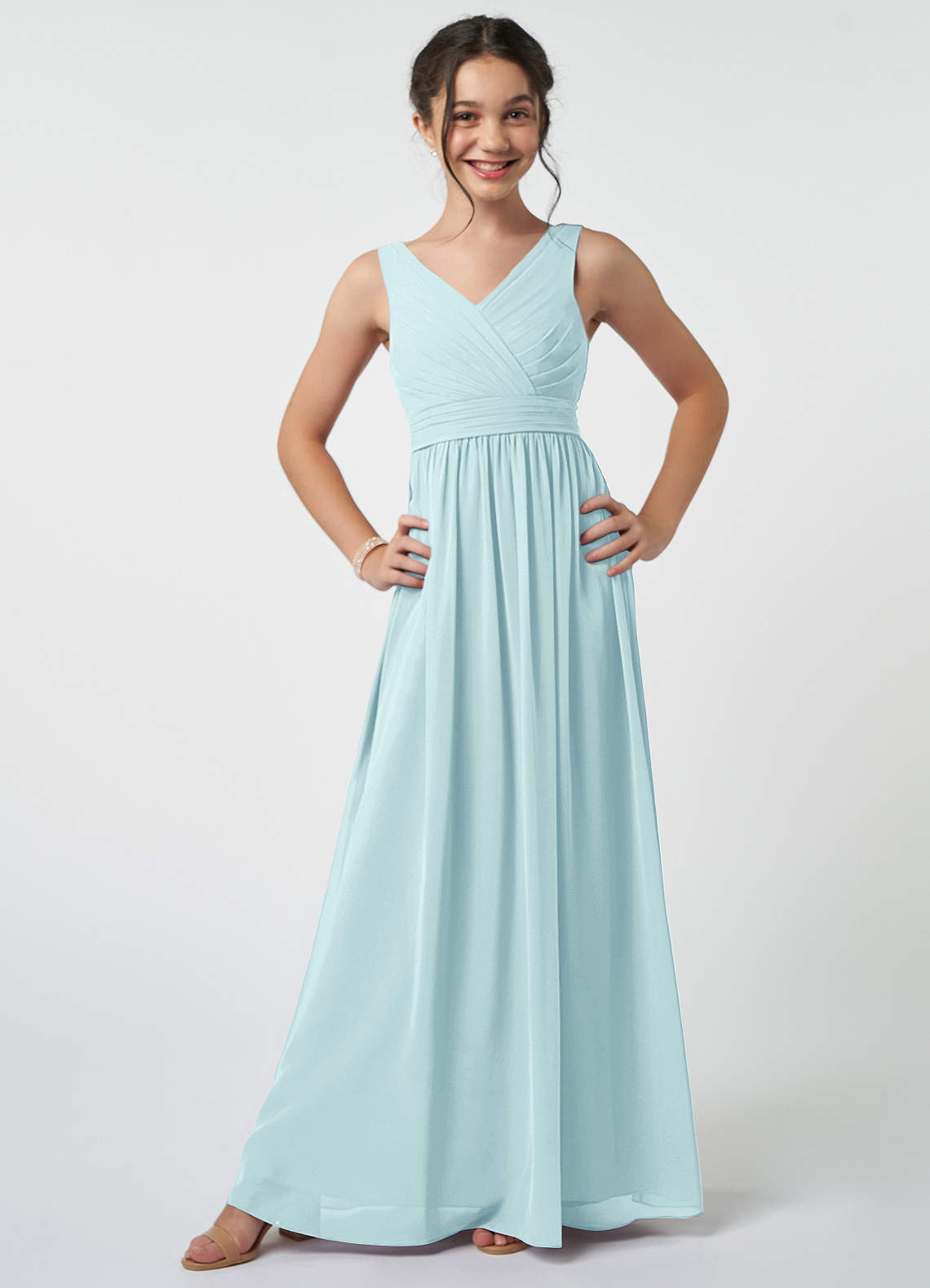 Sea Glass A-Line Pleated Chiffon Dress