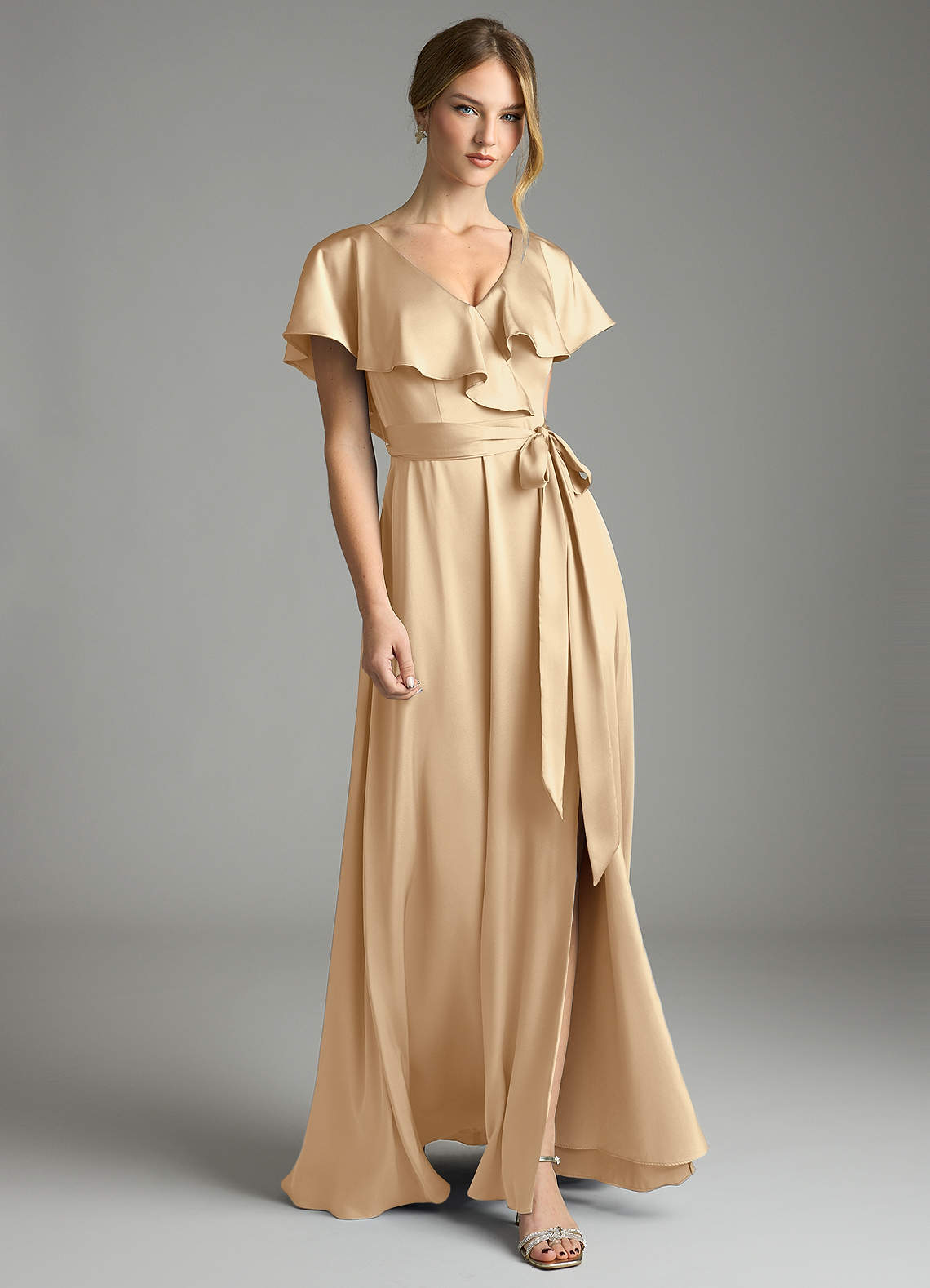 Champagne A-Line with Pockets Stretch Satin Dress