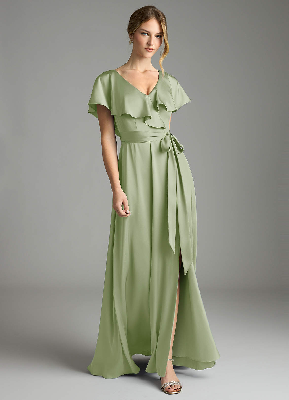 Dusty Sage A-Line with Pockets Stretch Satin Dress