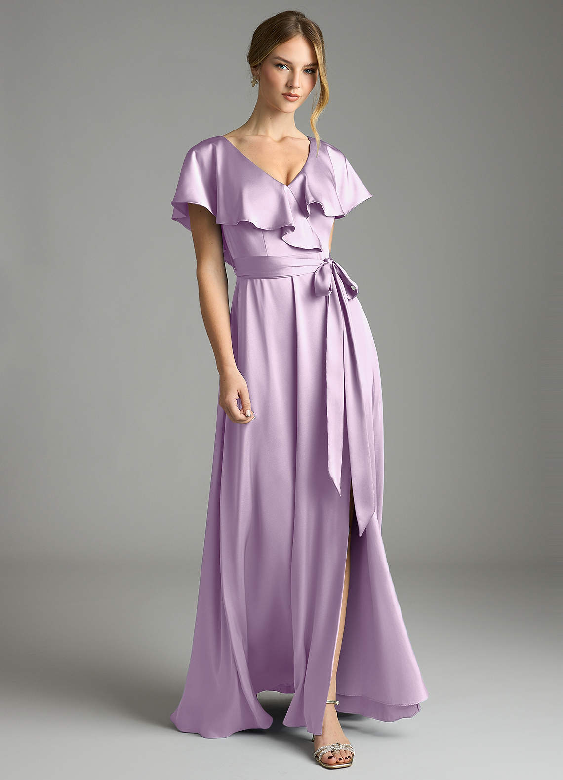 Frosted Lilac A-Line with Pockets Stretch Satin Dress