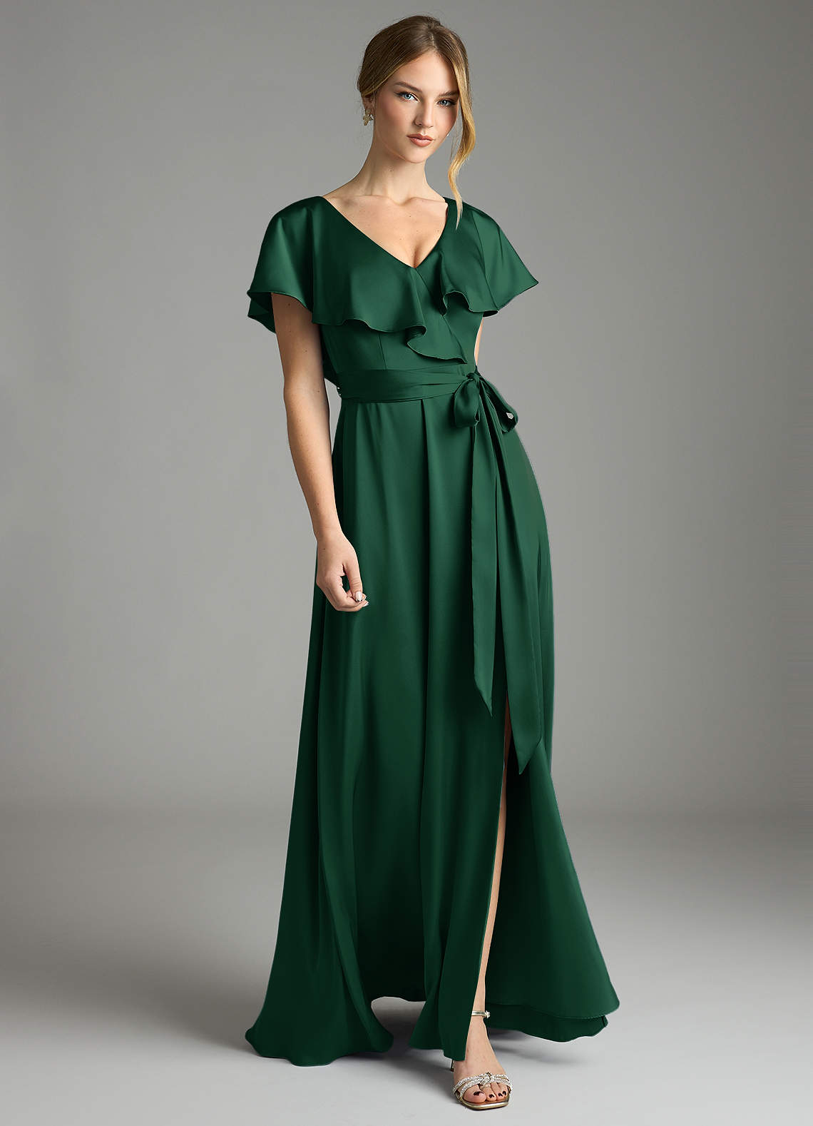 Dark Green A-Line with Pockets Stretch Satin Dress