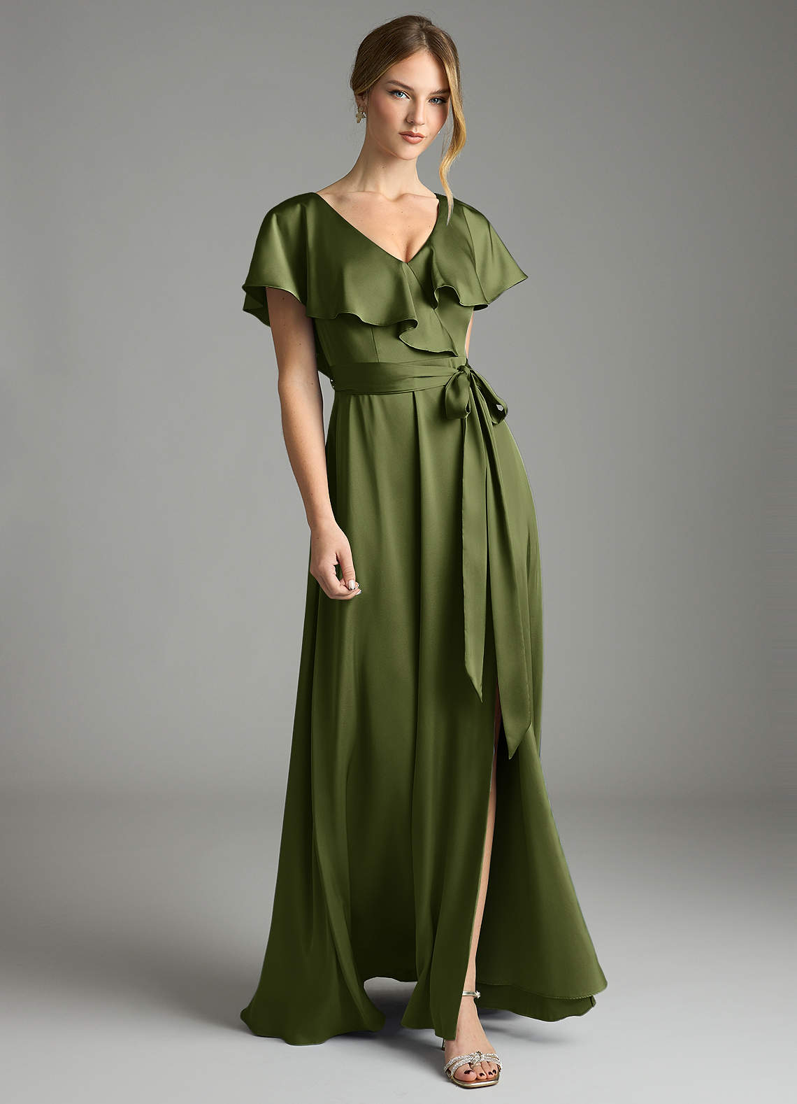Olive A-Line with Pockets Stretch Satin Dress