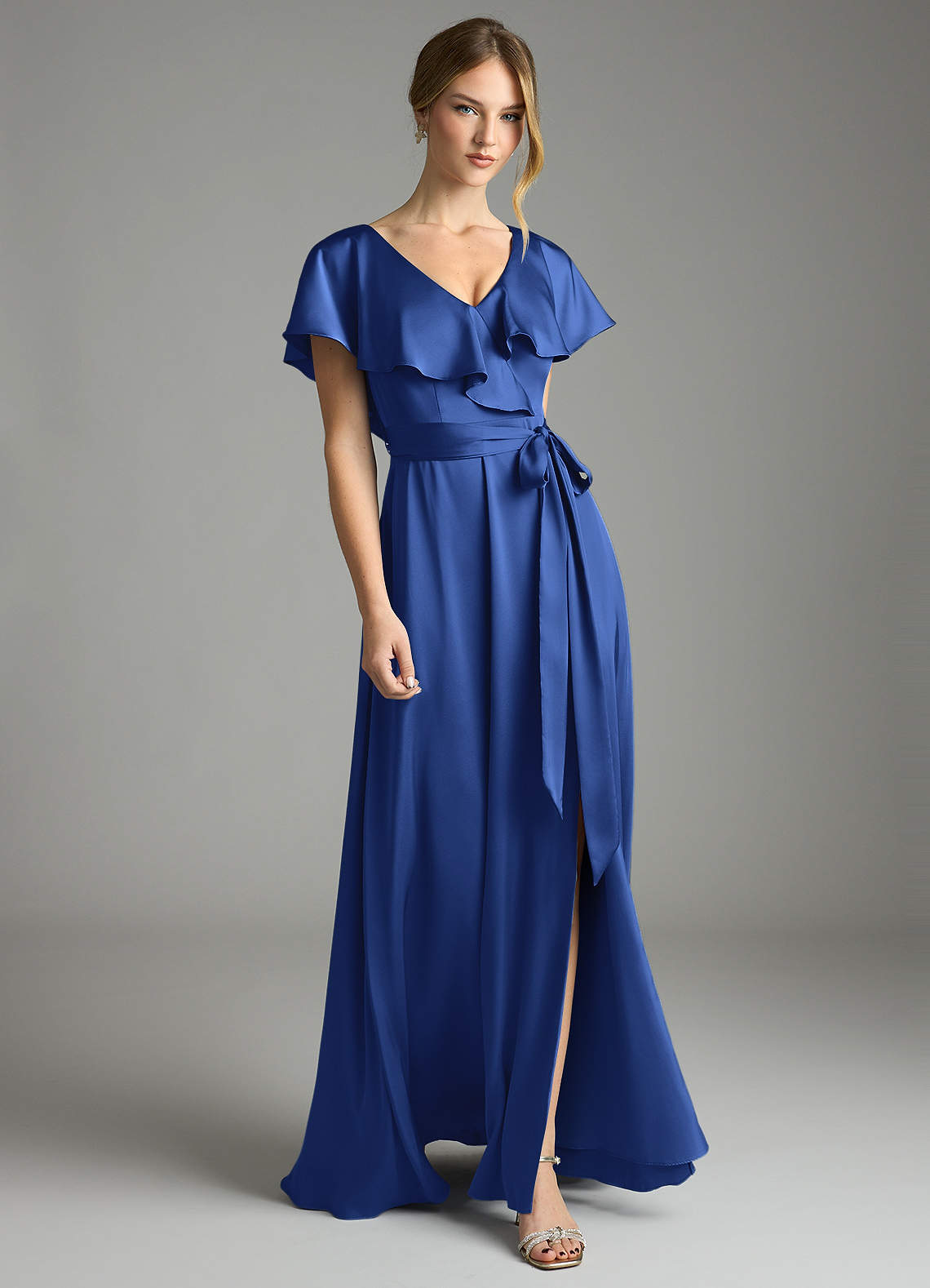 Royal Blue A-Line with Pockets Stretch Satin Dress