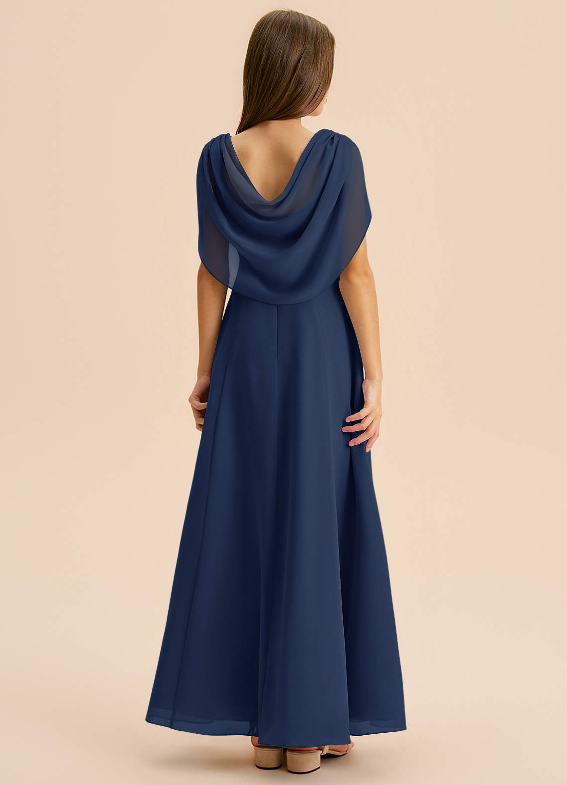Dark Navy A-Line Pleated Chiffon Dress