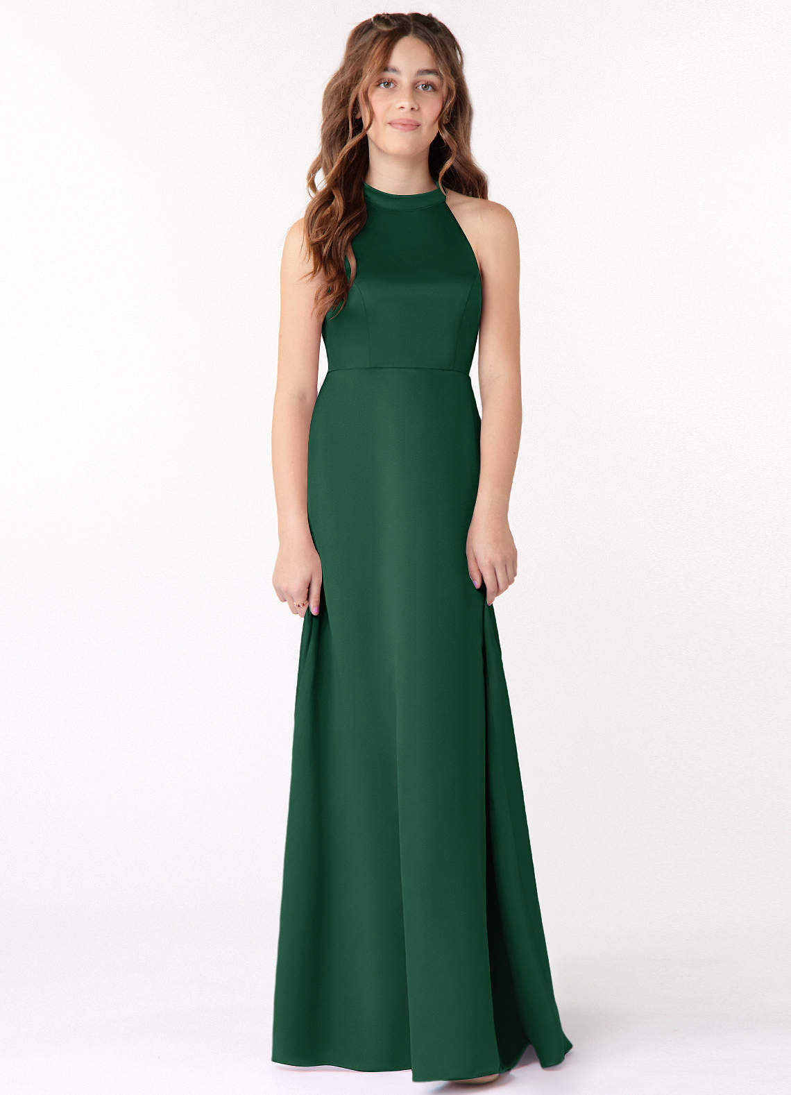 Dark Green A-Line Stretch Satin Dress
