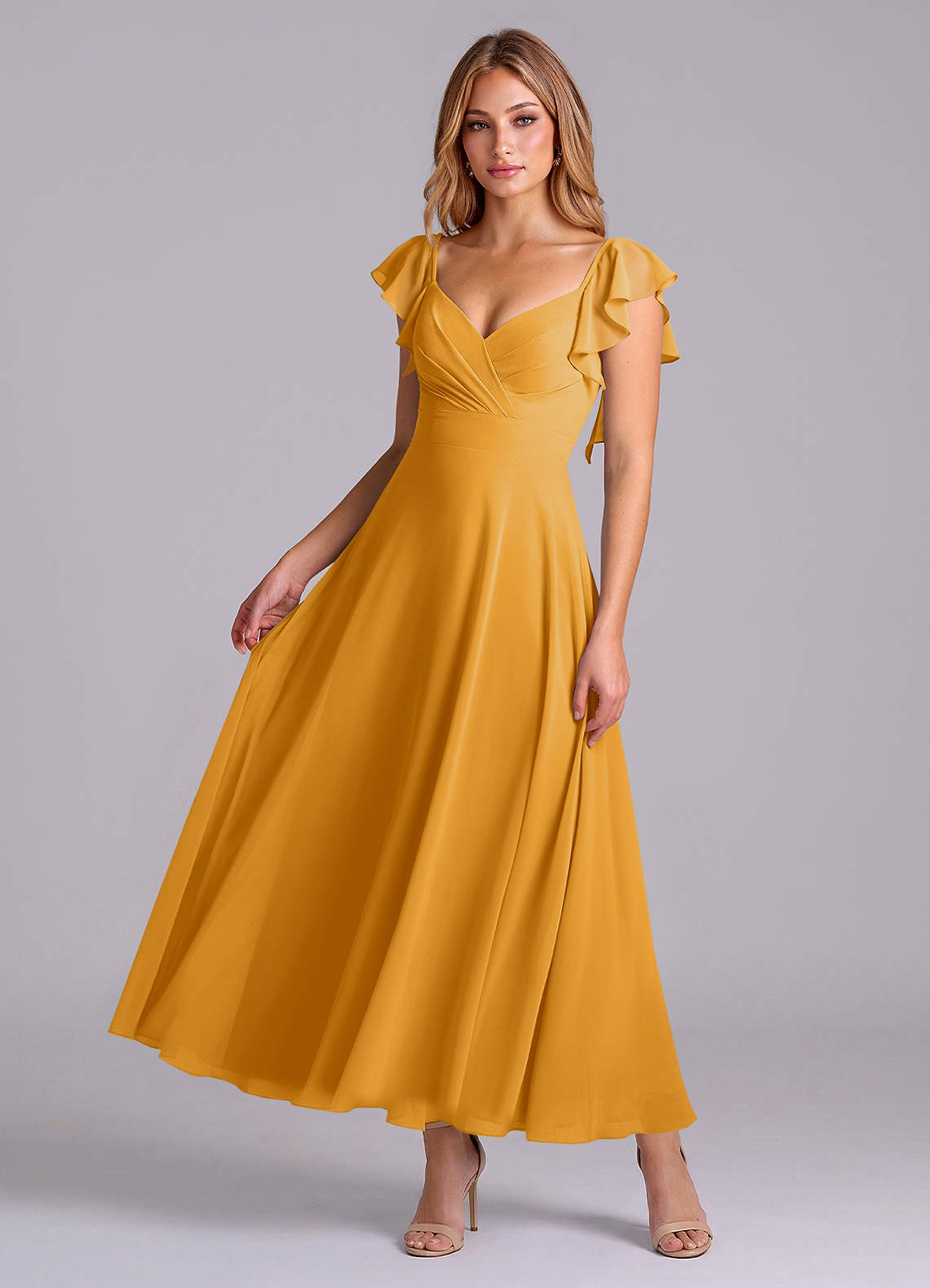 Butterscotch A-Line Ruched Chiffon Dress
