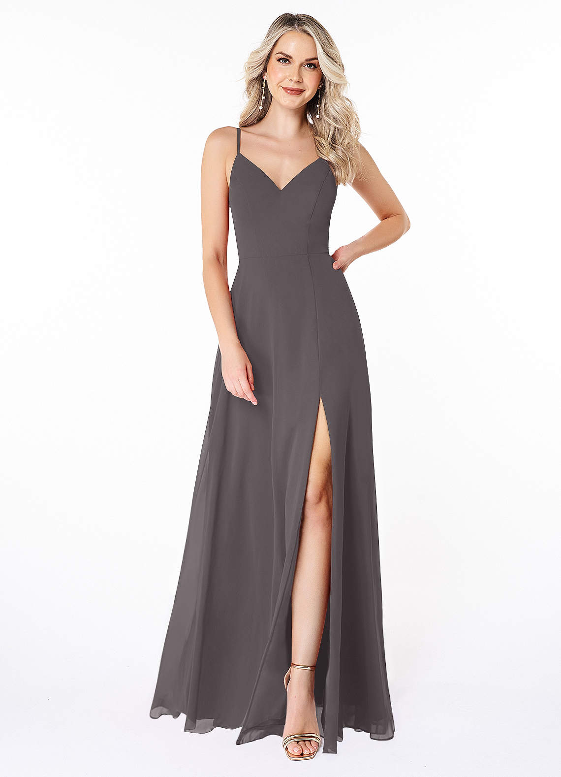 Steel Grey A-Line Lace Chiffon Dress