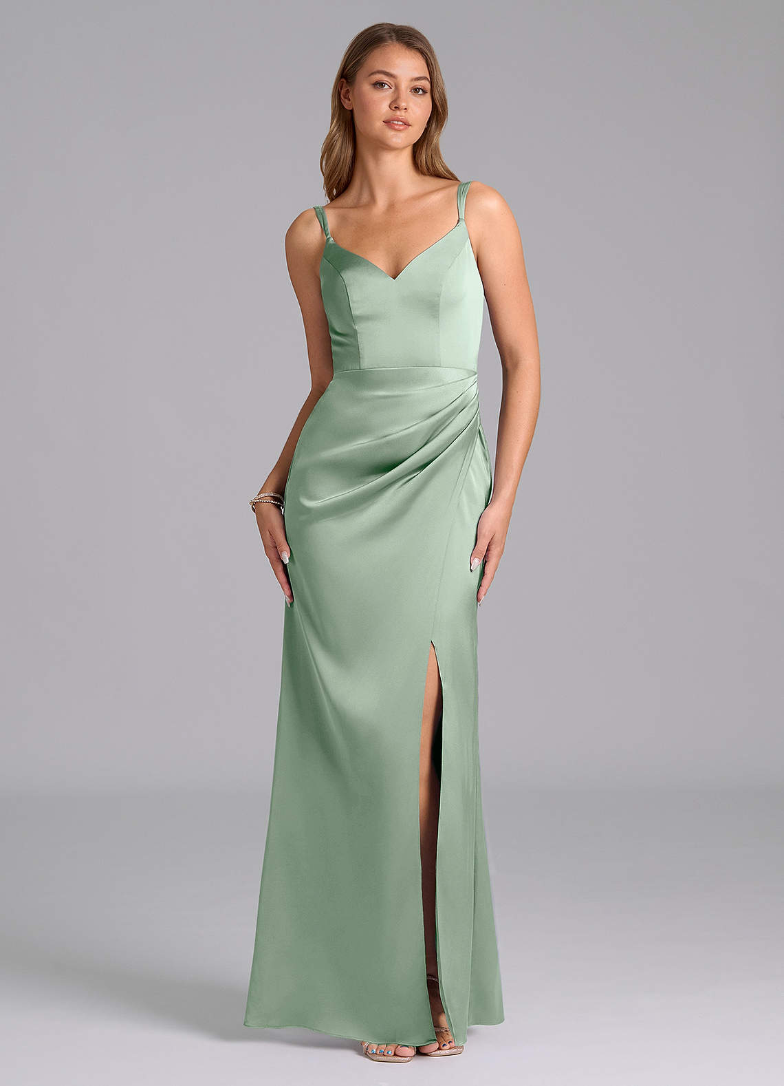 Agave Sheath Pleated Stretch Satin Dress