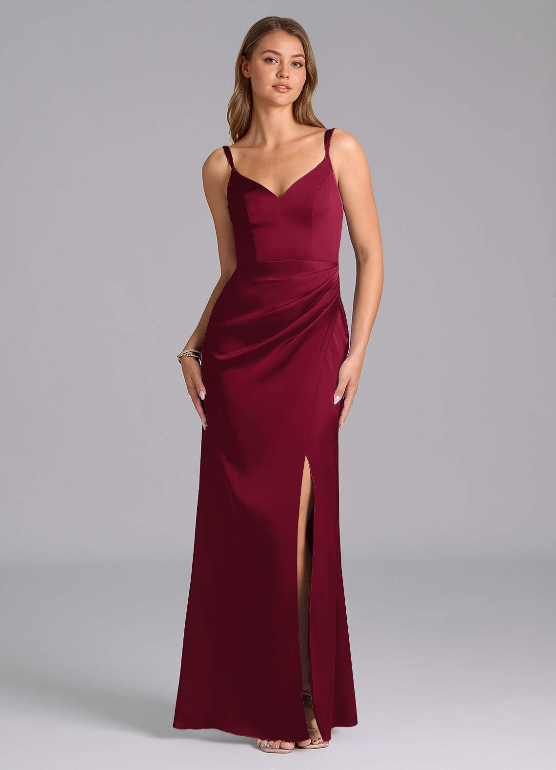 Burgundy Sheath Pleated Stretch Satin Dress