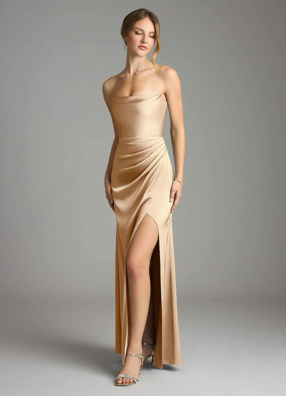 Champagne Mermaid Pleated Stretch Satin Convertible Dress