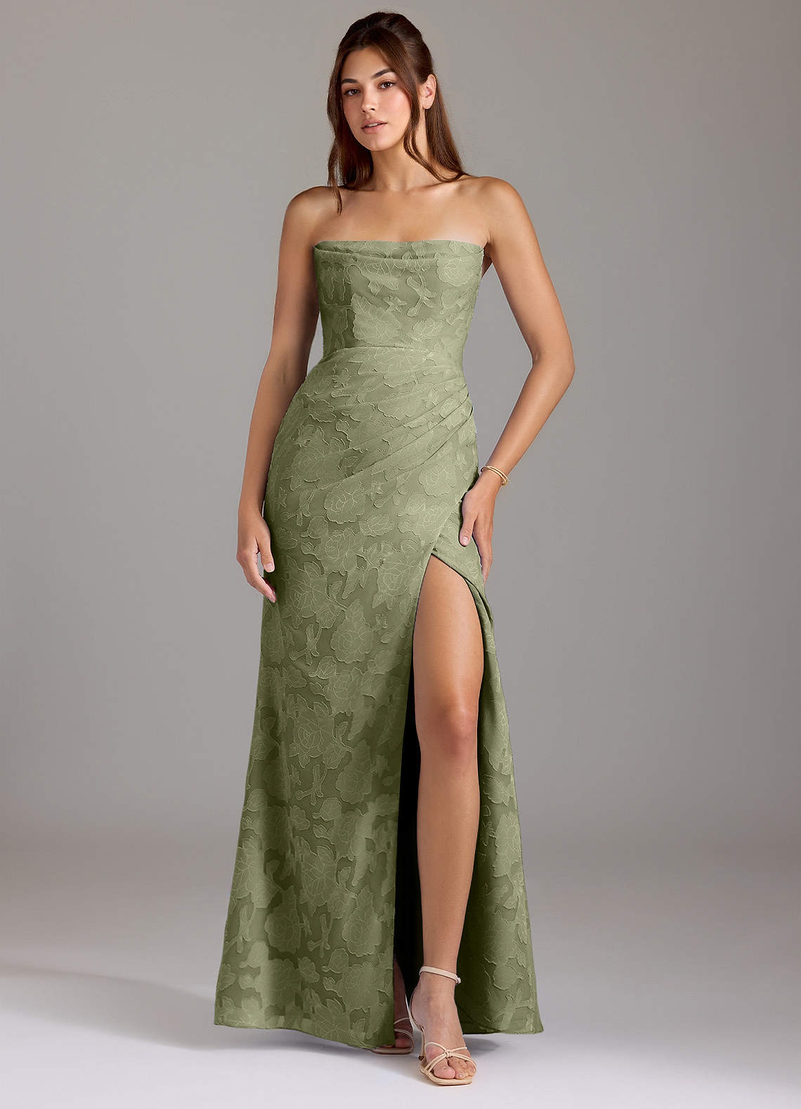 Pistachio Sheath Strapless Floral Burnout Convertible Dress