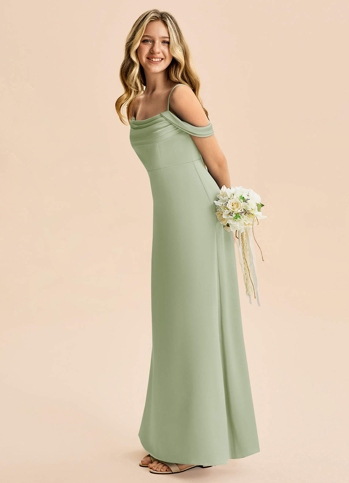 Dusty Sage A-Line Off the Shoulder Stretch Satin Dress