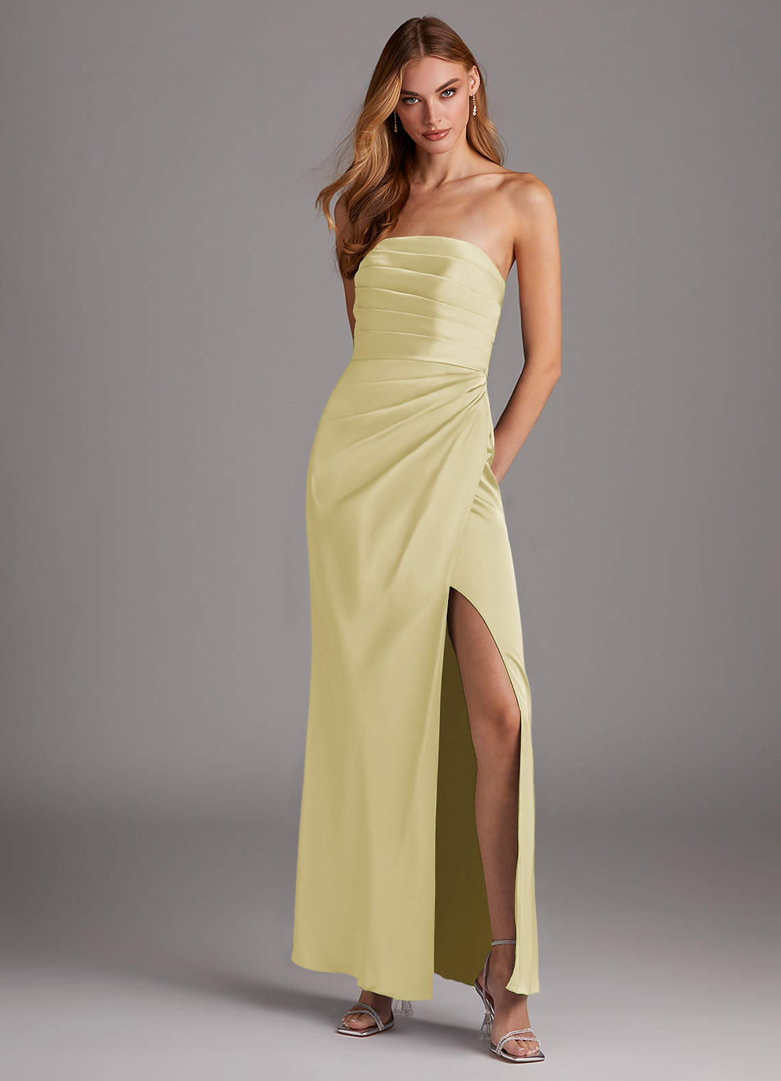 Lemon Sorbet Sheath Strapless Stretch Satin Convertible Dress
