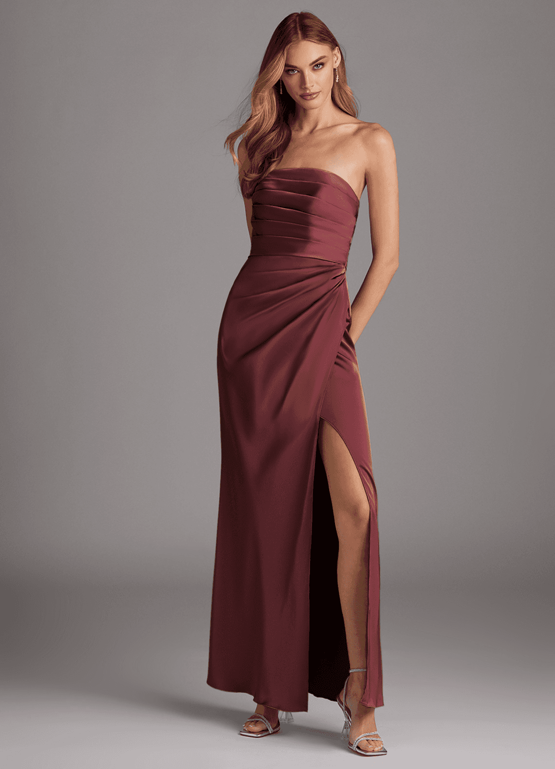 Agave Sheath Strapless Stretch Satin Convertible Dress