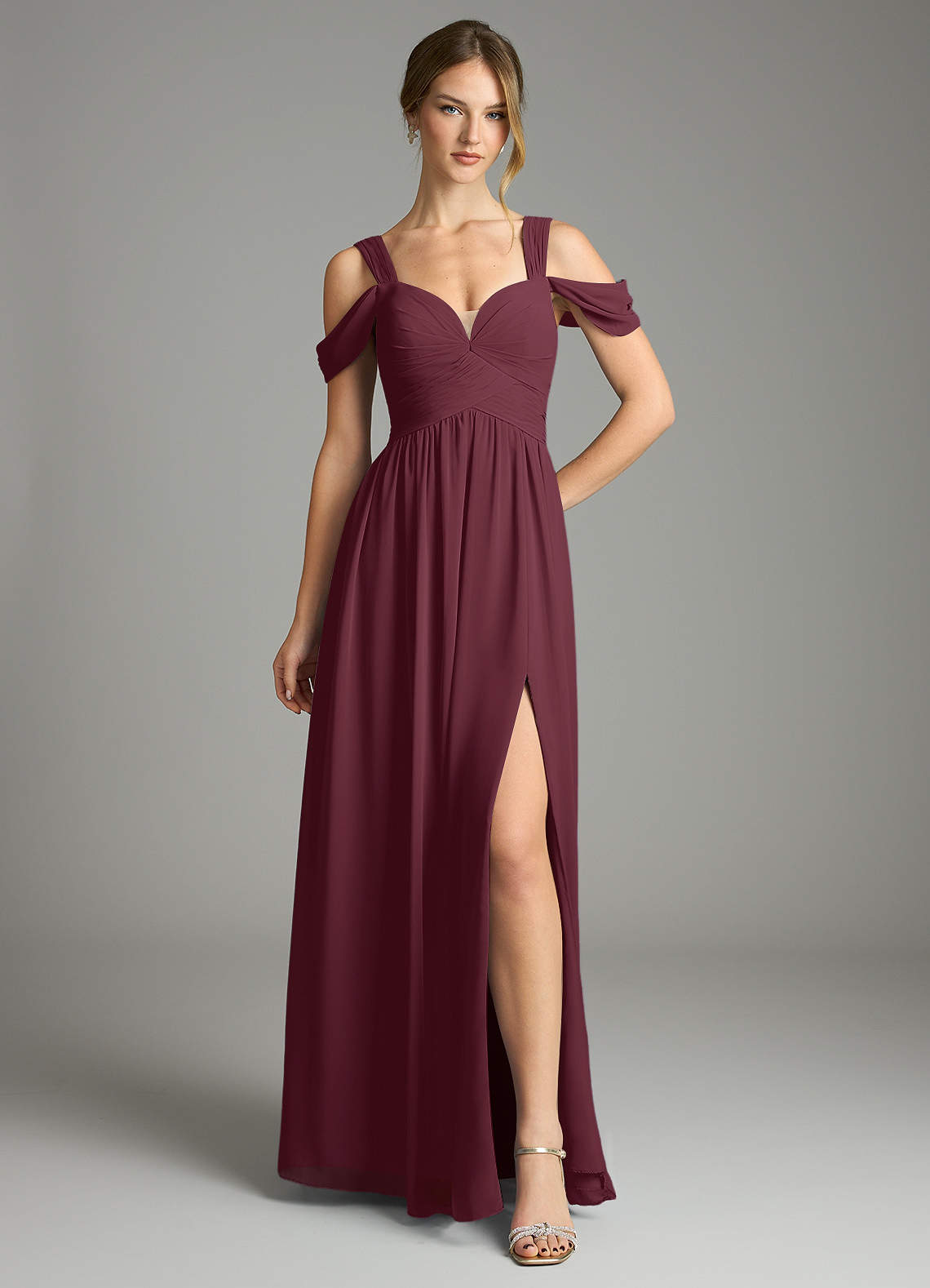 Cabernet A-Line Off the Shoulder Chiffon Dress