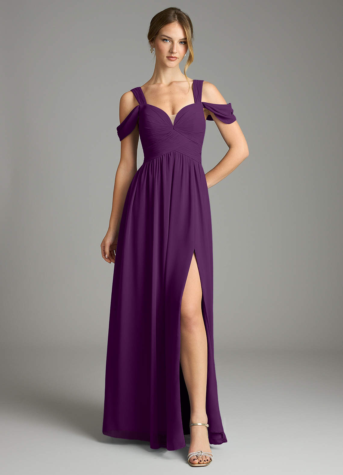 Grape A-Line Off the Shoulder Chiffon Dress