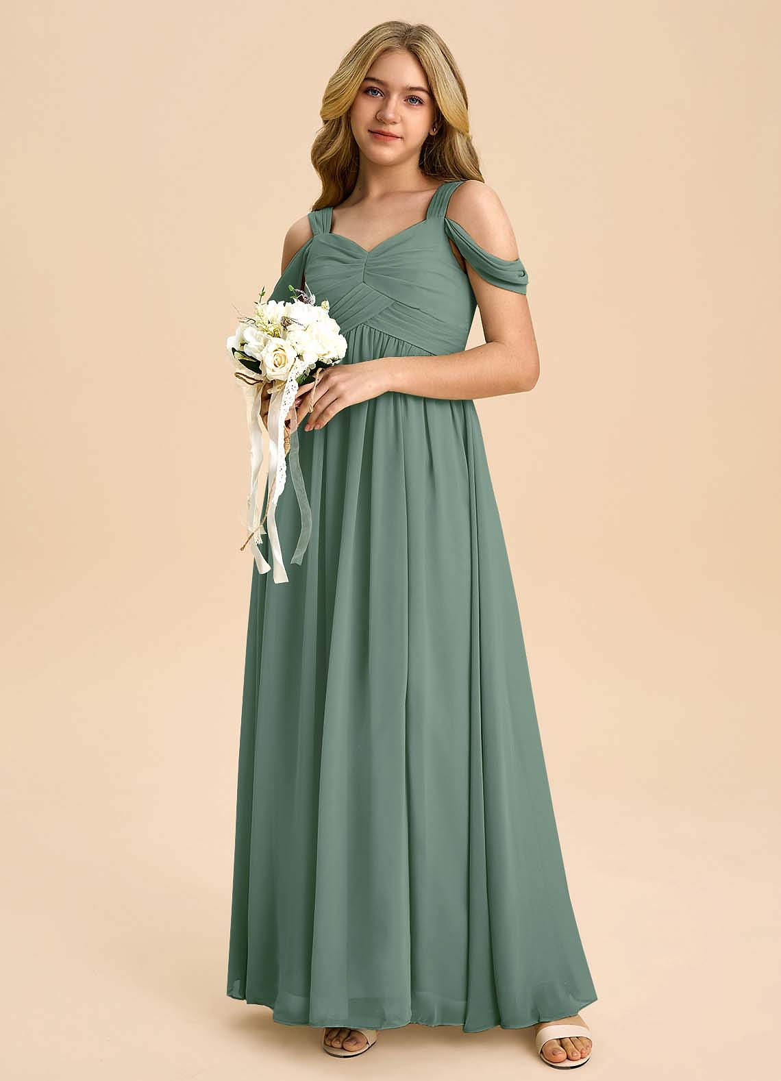 Eucalyptus A-Line Off the Shoulder Chiffon Dress