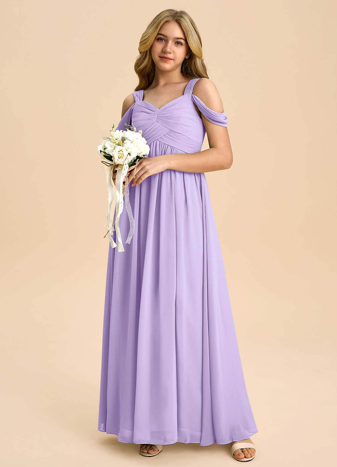 Lilac A-Line Off the Shoulder Chiffon Dress