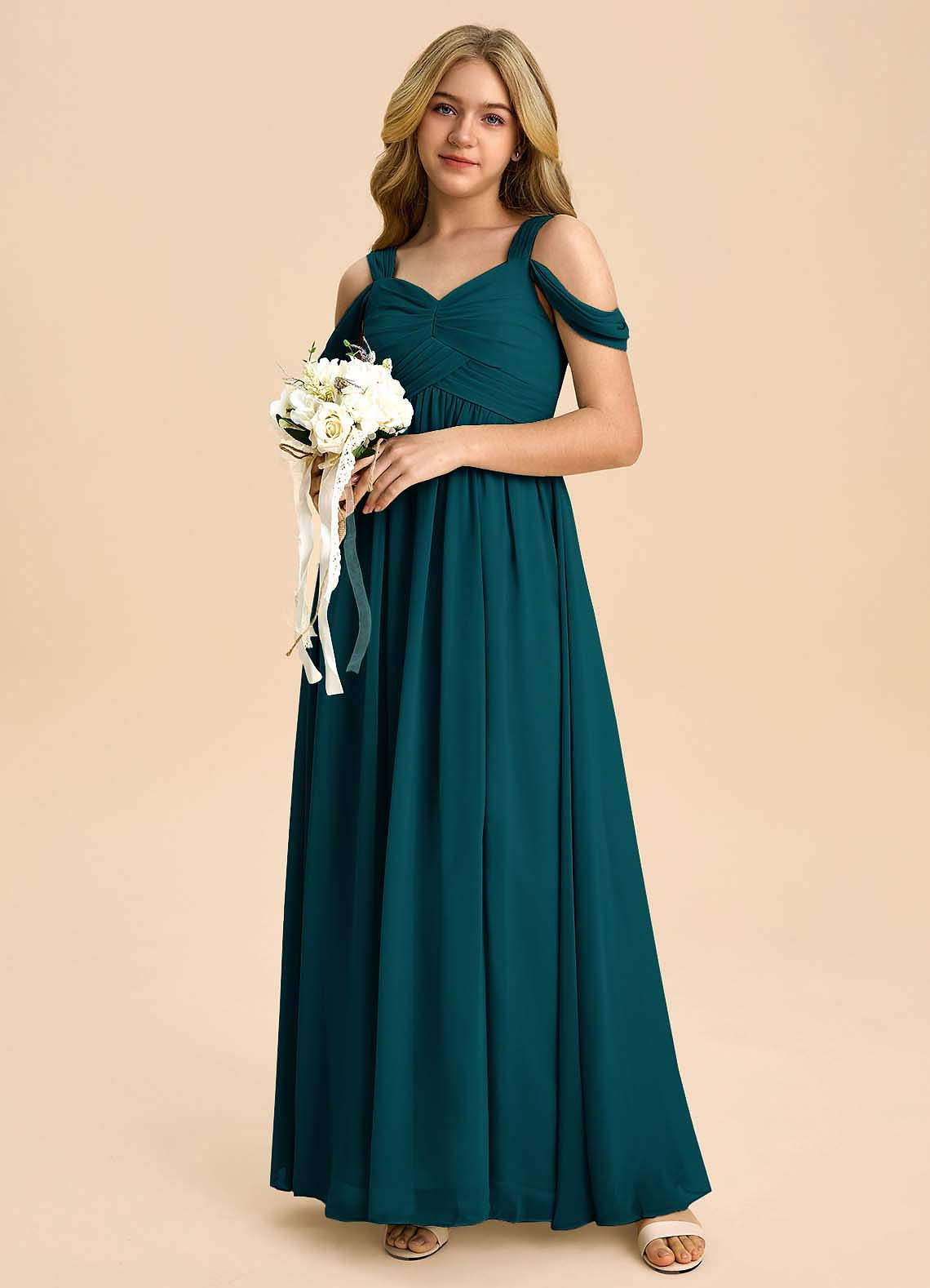 Pine A-Line Off the Shoulder Chiffon Dress