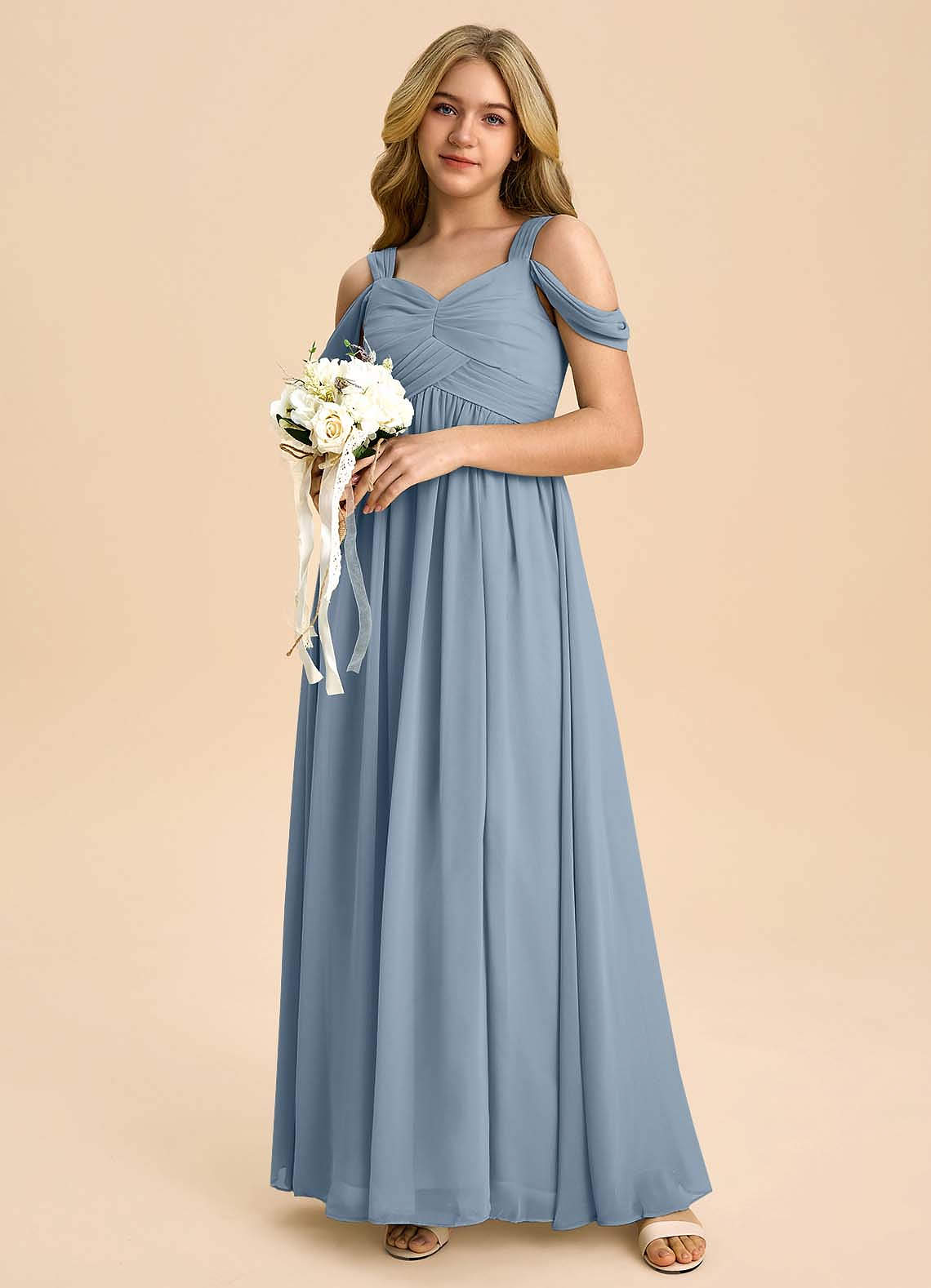 Dusty Blue A-Line Off the Shoulder Chiffon Dress