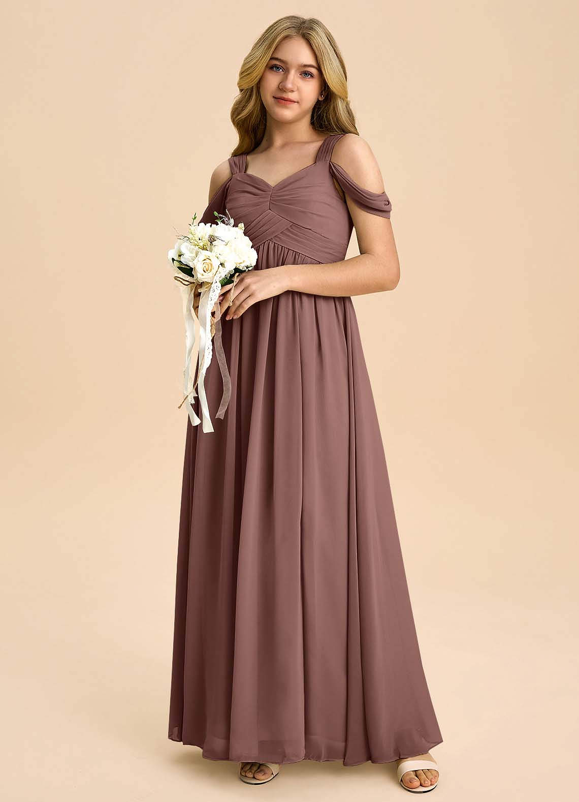 Espresso A-Line Off the Shoulder Chiffon Dress