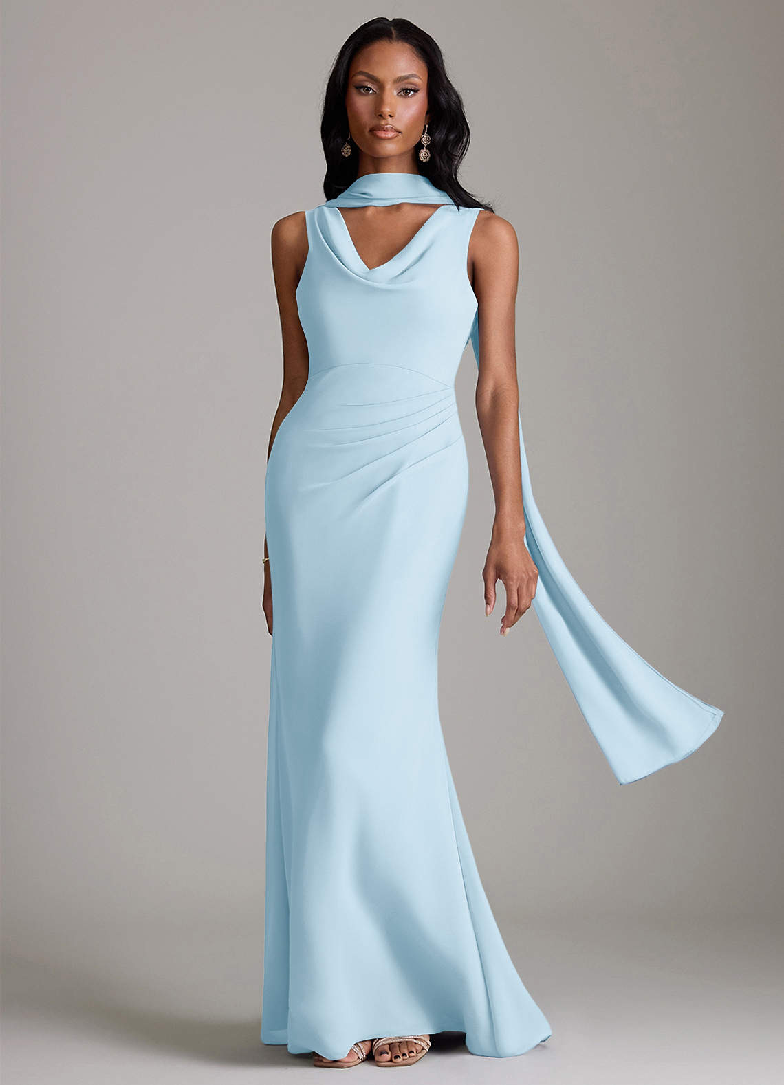 Sky Blue Mermaid Pleated Chiffon Dress