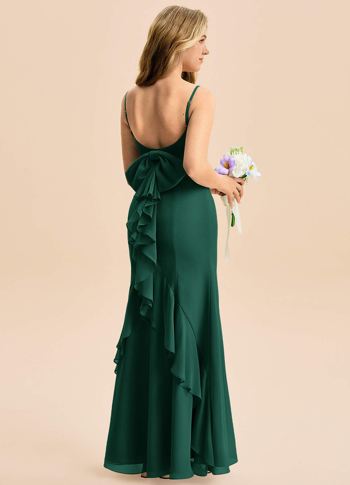 Emerald Mermaid Bow Chiffon Dress