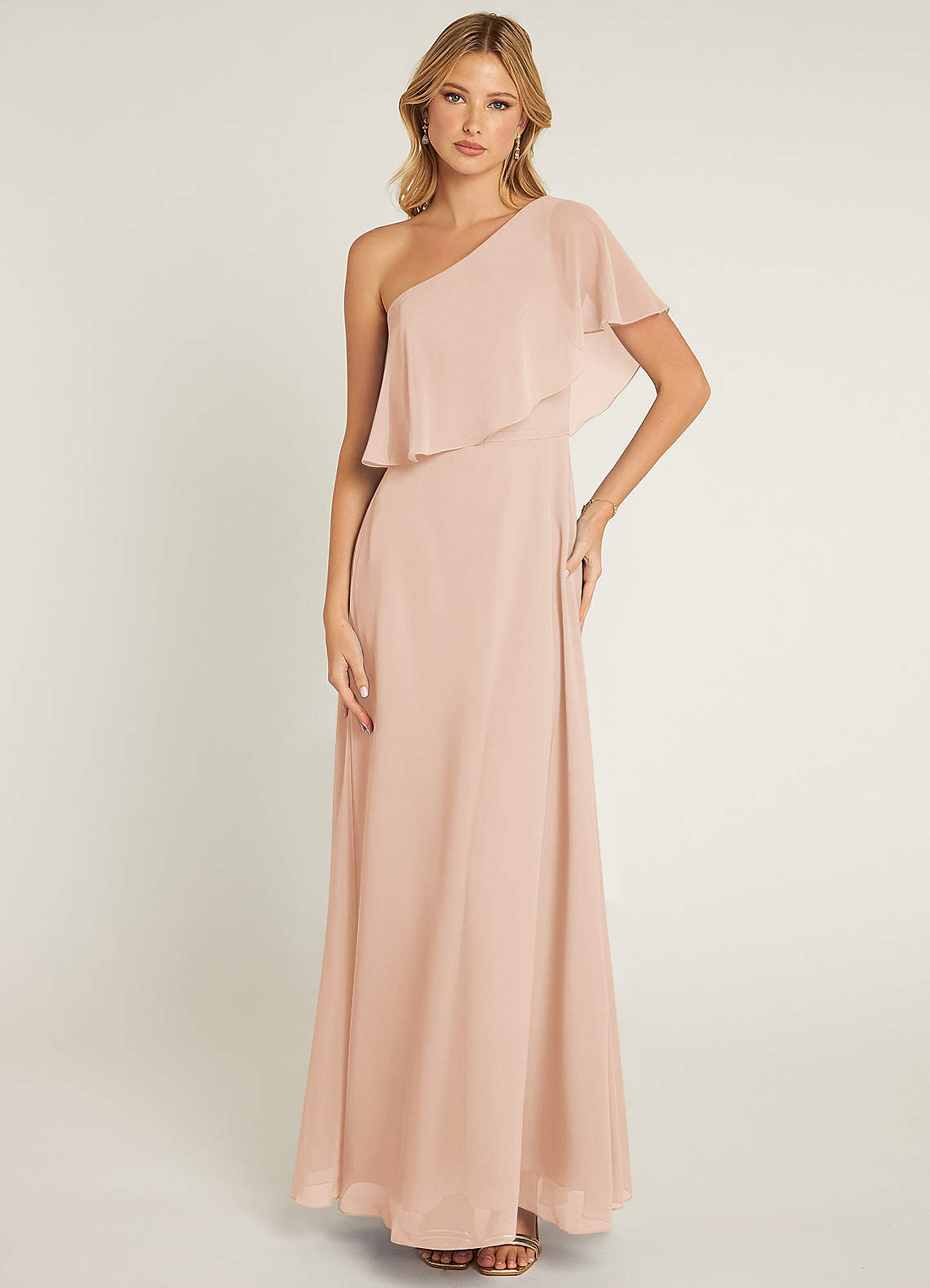 English Rose A-Line One Shoulder Chiffon Dress