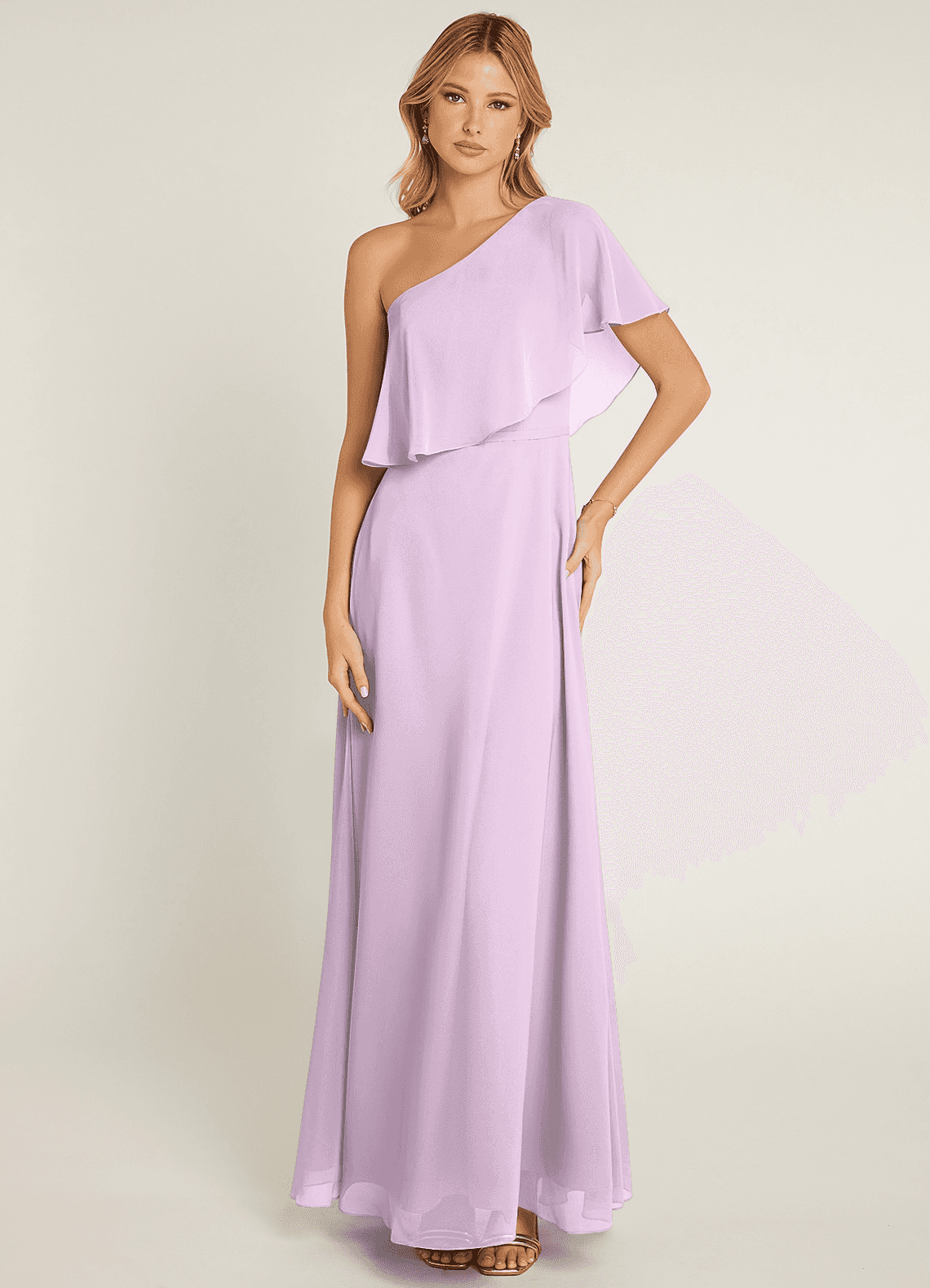 Frosted Lilac A-Line One Shoulder Chiffon Dress