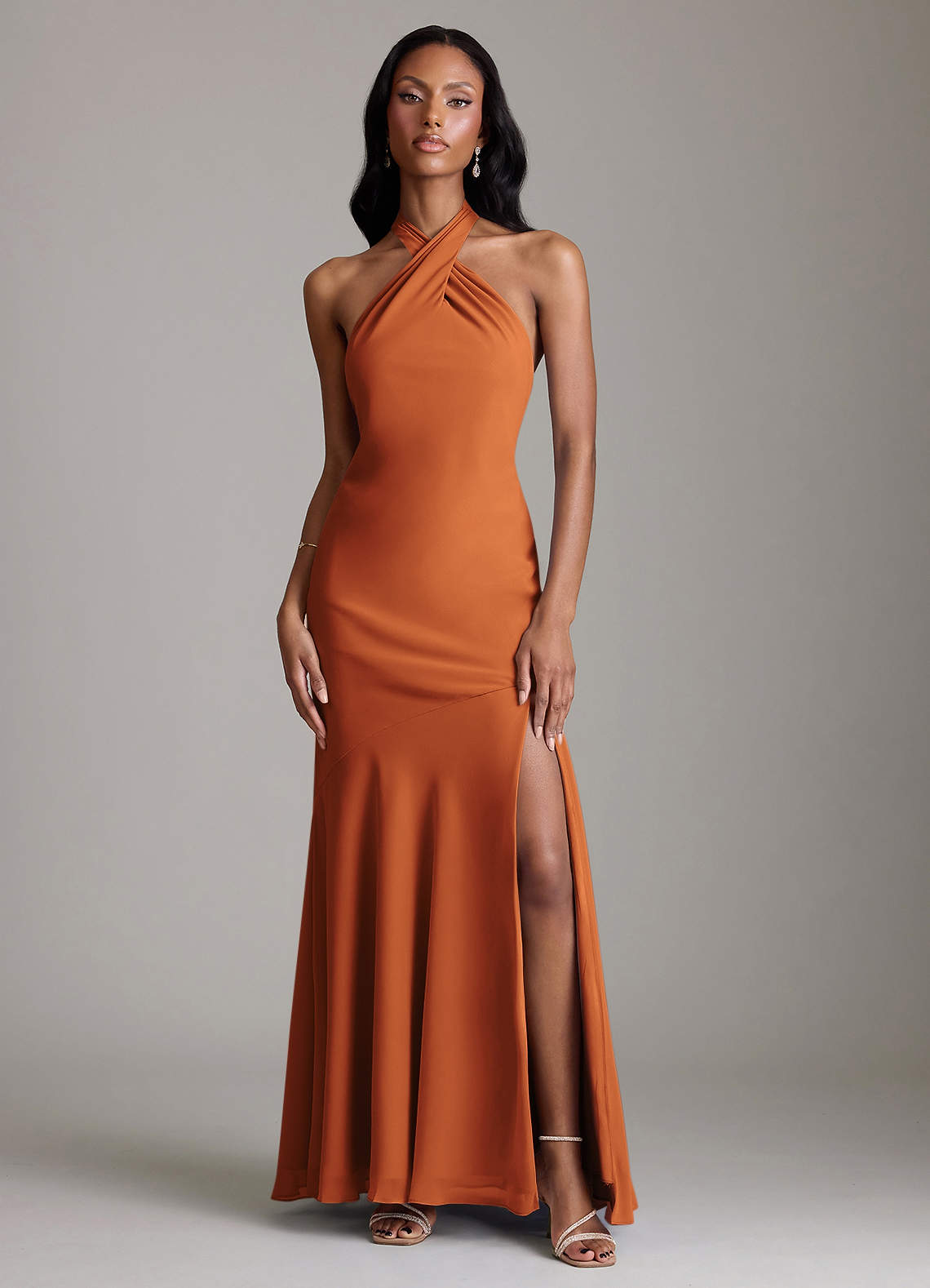 Cinnamon Mermaid Pleated Chiffon Dress