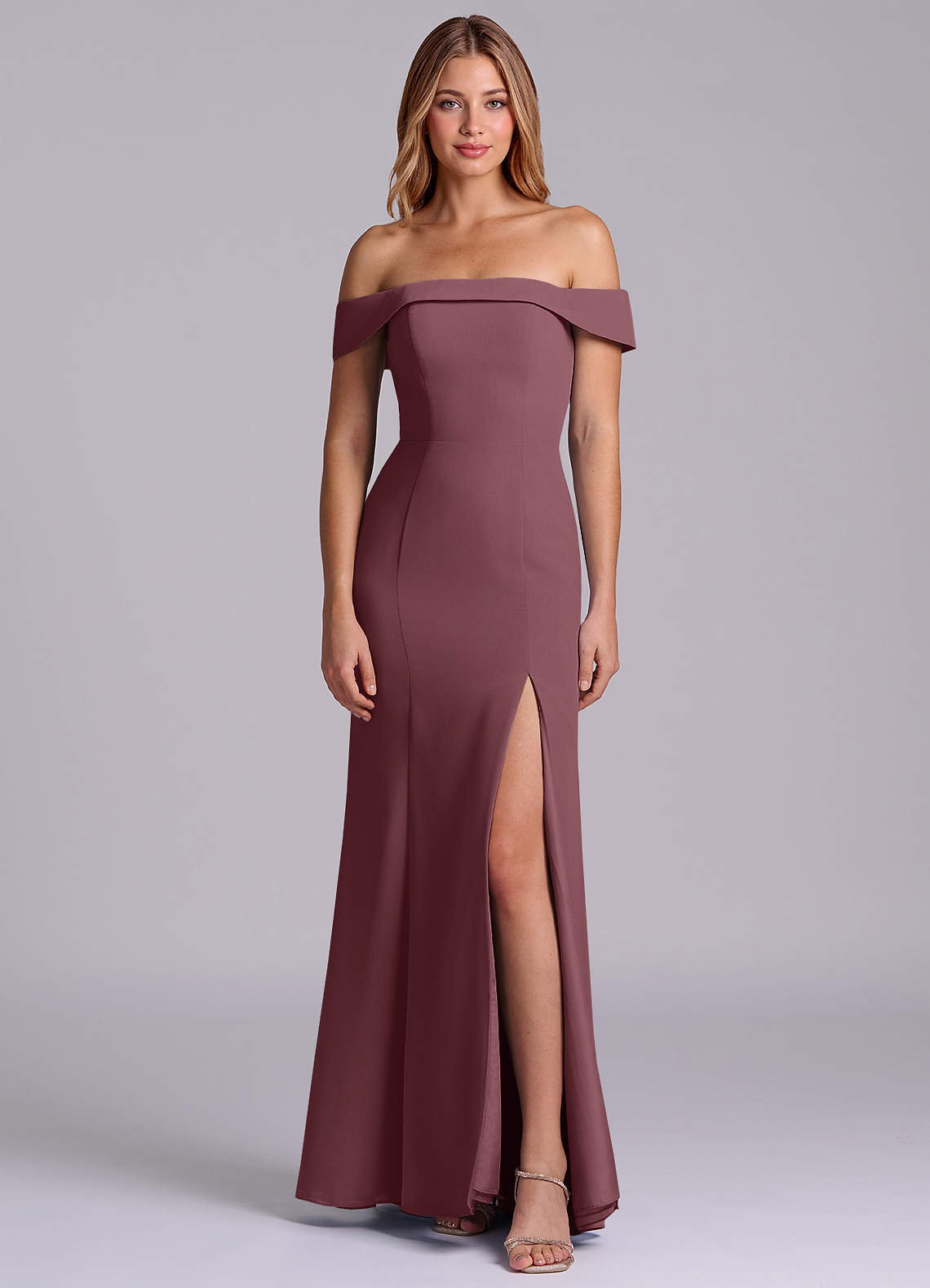 Sangria Sheath Off the Shoulder Chiffon Convertible Dress